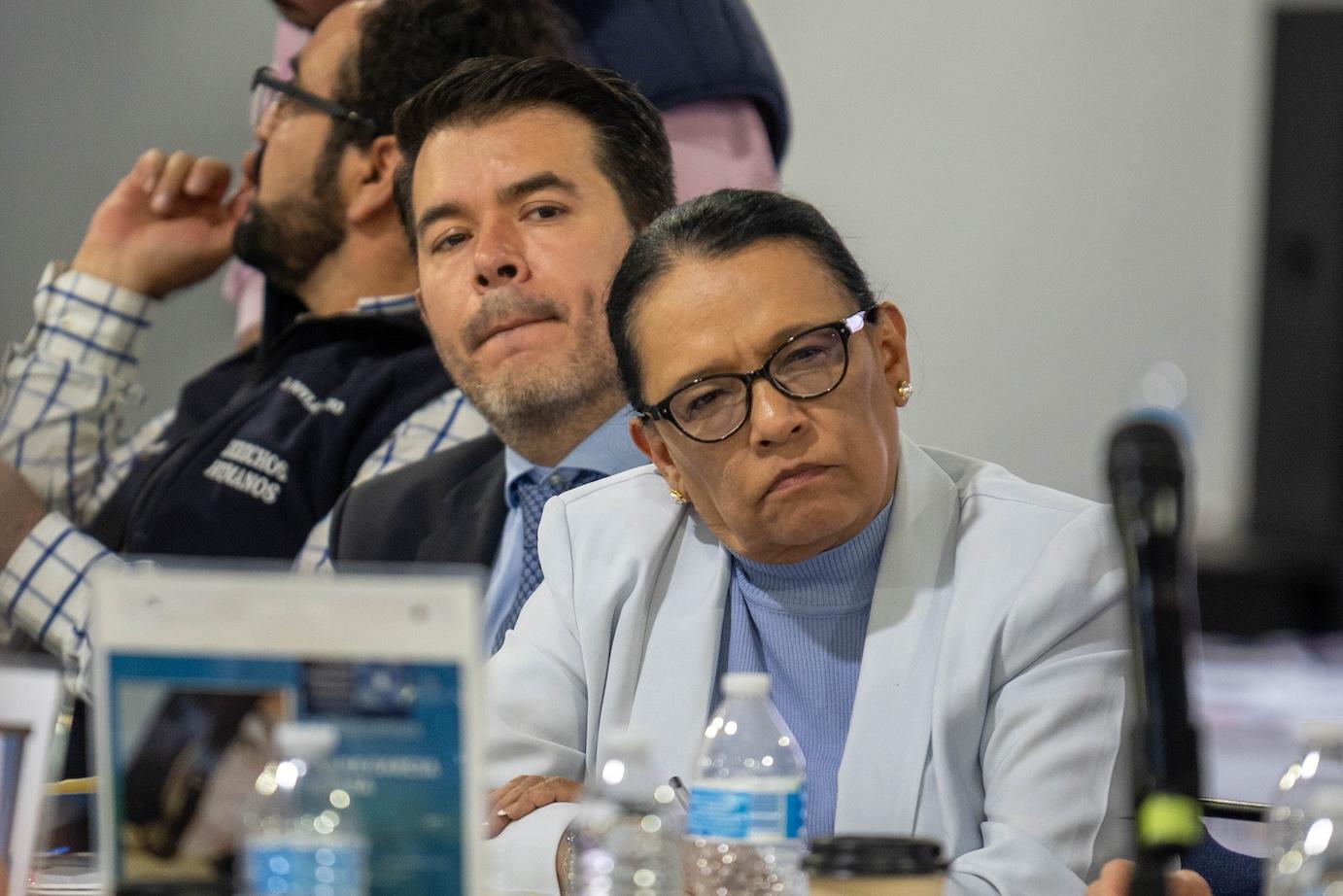 La secretaria de Gobernación Rosa Icela Rodríguez, junto al subsecretario de Derechos Humanos Arturo Medina en una de las reuniones con colectivos, realizada el 10 de abril. (Juan Abundis/ObturadorMX)