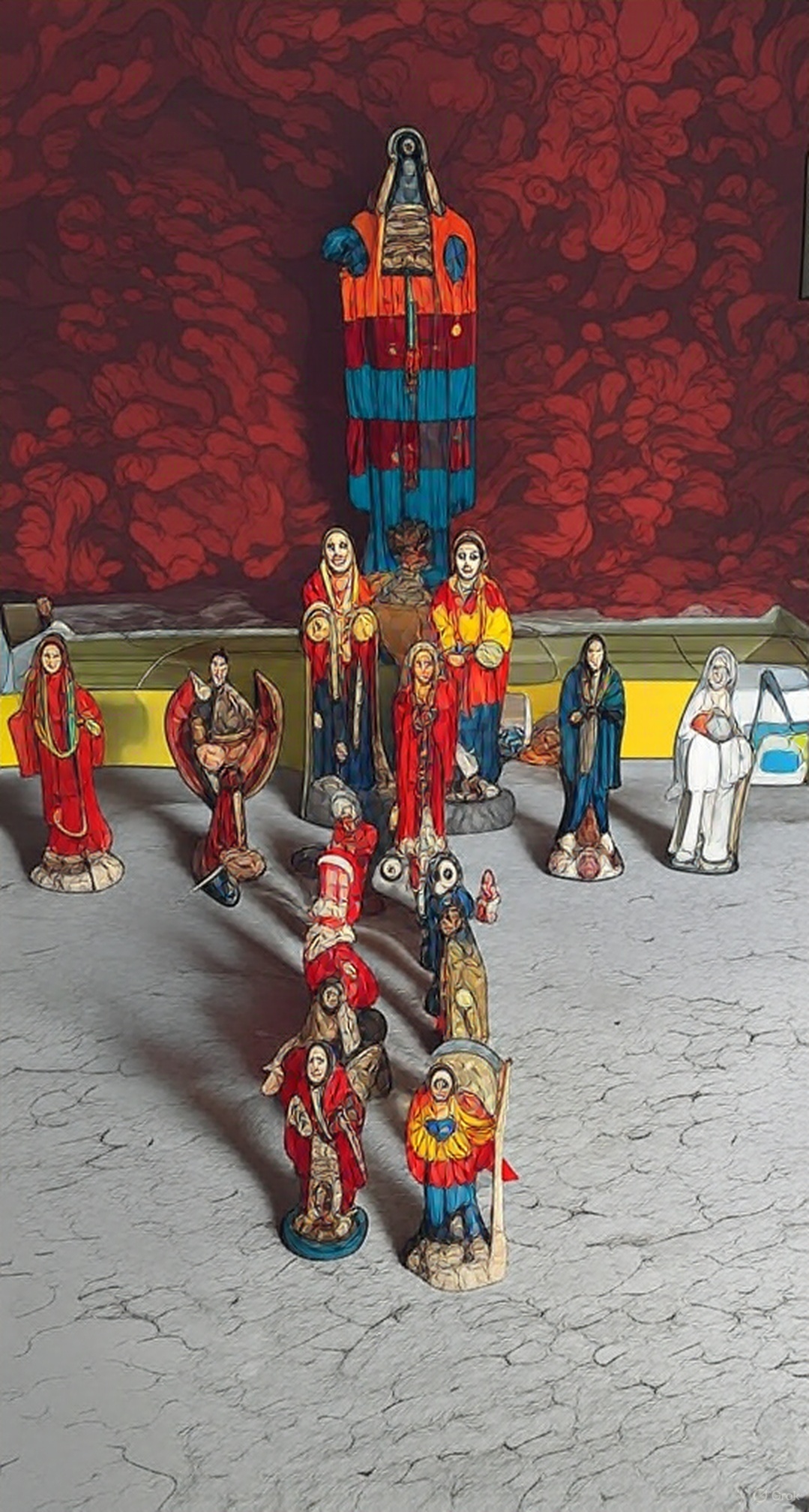 Ecos de la capilla: Las estatuillas religiosas forman parte de la escenografía del lugar; entre ellas se encontraron vestigios del crimen.