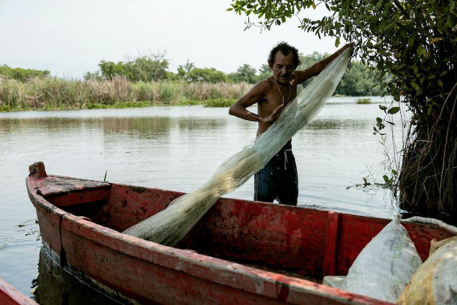“Antes uno pasaba un par de horas y sacaba algo. Ahora puedo estar todo el día y tal vez no pesco ni para llevar a vender,” dice en voz baja. La pesca para él es un ingreso complementario, una manera de aliviar la economía familiar. Pero cada día resulta más difícil. Hace 7 años, en un buen día de pesca todavía lograba reunir entre $45 a $130 dólares aproximadamente, ahora un día de pesca puede representar nada.