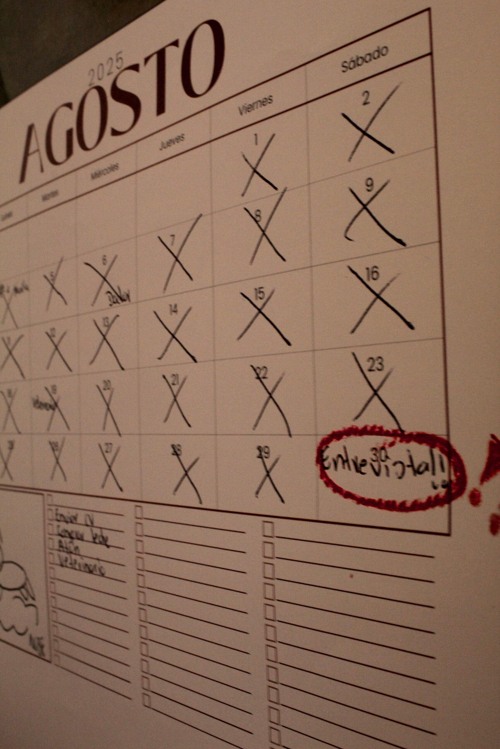 Aquí también hay un calendario en el que se marca cada que un día termina. Han pasado muchos días desde la última vez que vi a Carlos, y con cada momento que pasa siento que lo extraño más.