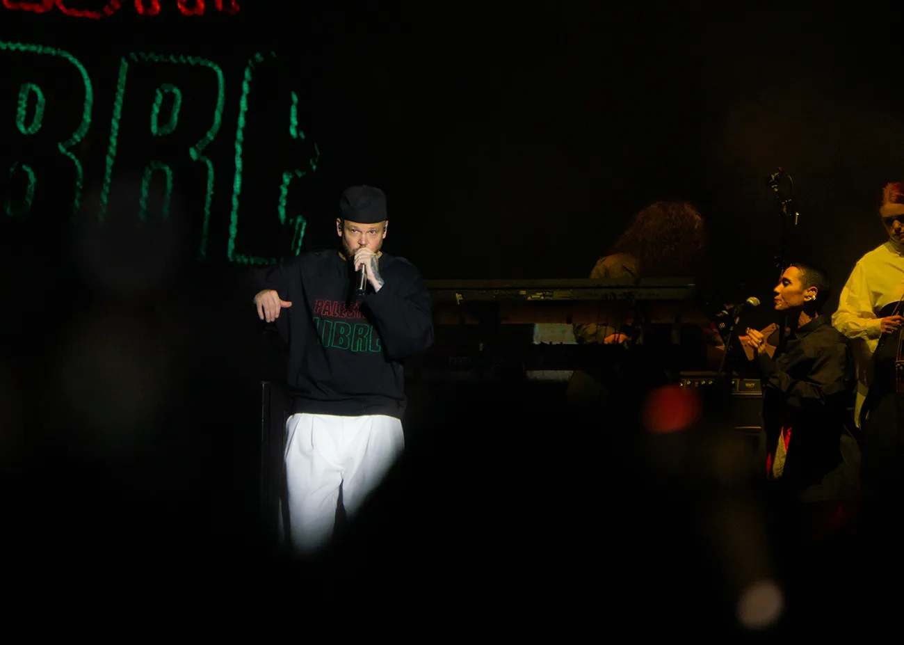 Previo a la participación del rapero, el colectivo Mujer en Cypher. Barras, beats y resistencia en femenino abrió el escenario. Arianna Puello, Ximbo, Niña Dioz, Prania Esponda, Azuky y Mena ofrecieron un repertorio de rap con mensajes de empoderamiento y resistencia, visibilizando la presencia de las mujeres en la escena del hip-hop.