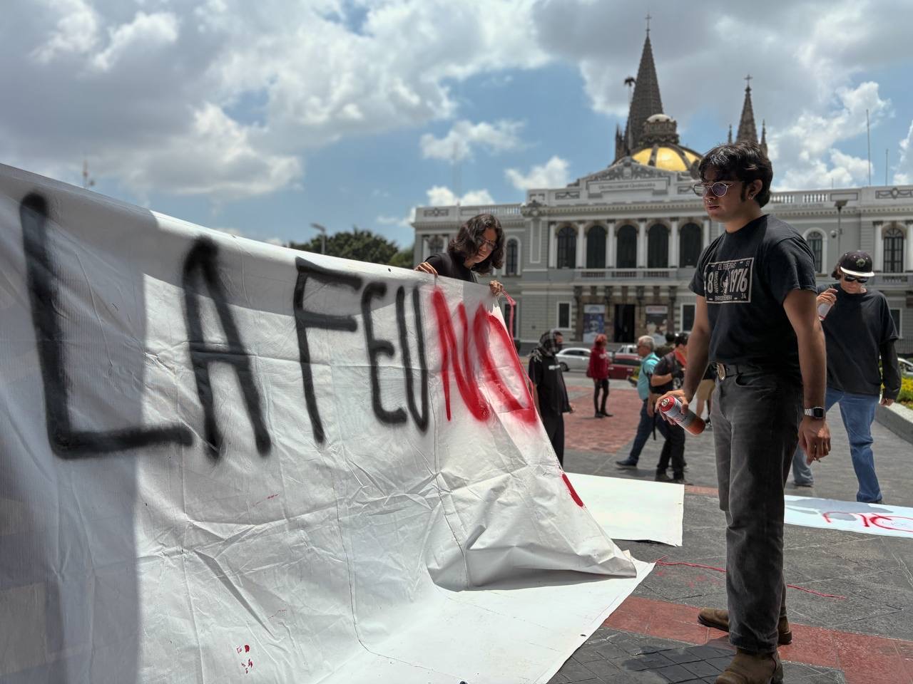 Este grupo de estudiantes provenientes de los Centros Universitarios de Ciencias Biológicas y Agropecuarios (CUCBA), Ciencias Económicas y Administrativas (CUCEA), Ciencias Sociales y Humanidades (CUCSH) y Ciencias de la Salud (CUCS), en la protesta, no sólo manifestaron su rechazo a la Federación Estudiantil Universitaria (FEU) -órgano institucional de representación estudiantil- sino que denunciaron que esta instancia ha sido sistemáticamente omisa, pues no escucha ni resuelve las necesidades de la comunidad estudiantil de la UdeG.