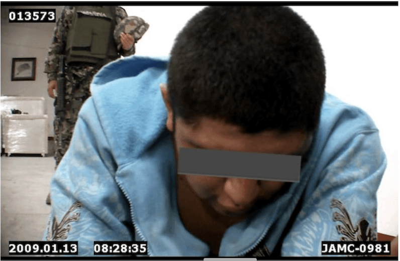 “Me dieron un culatazo en la ceja izquierda, y me reventaron y me siguieron golpeando me trasladaron a un lugar, pero en todo el camino me iban dando electricidad con un aparato en todo el cuerpo, y preguntándome por las armas y de ahí se subieron encima de mí y me daban electricidad en mis huevos me trasladaron a otro lugar y me metieron a un cuarto me tiraron al suelo y me empezaron a echar agua fría y me empezaron a dar electricidad abajo en la planta de los pies y en los huevos, en la cara me empezaron a hacer preguntas”, narró en la ampliación de su declaración preparatoria en enero de 2015.