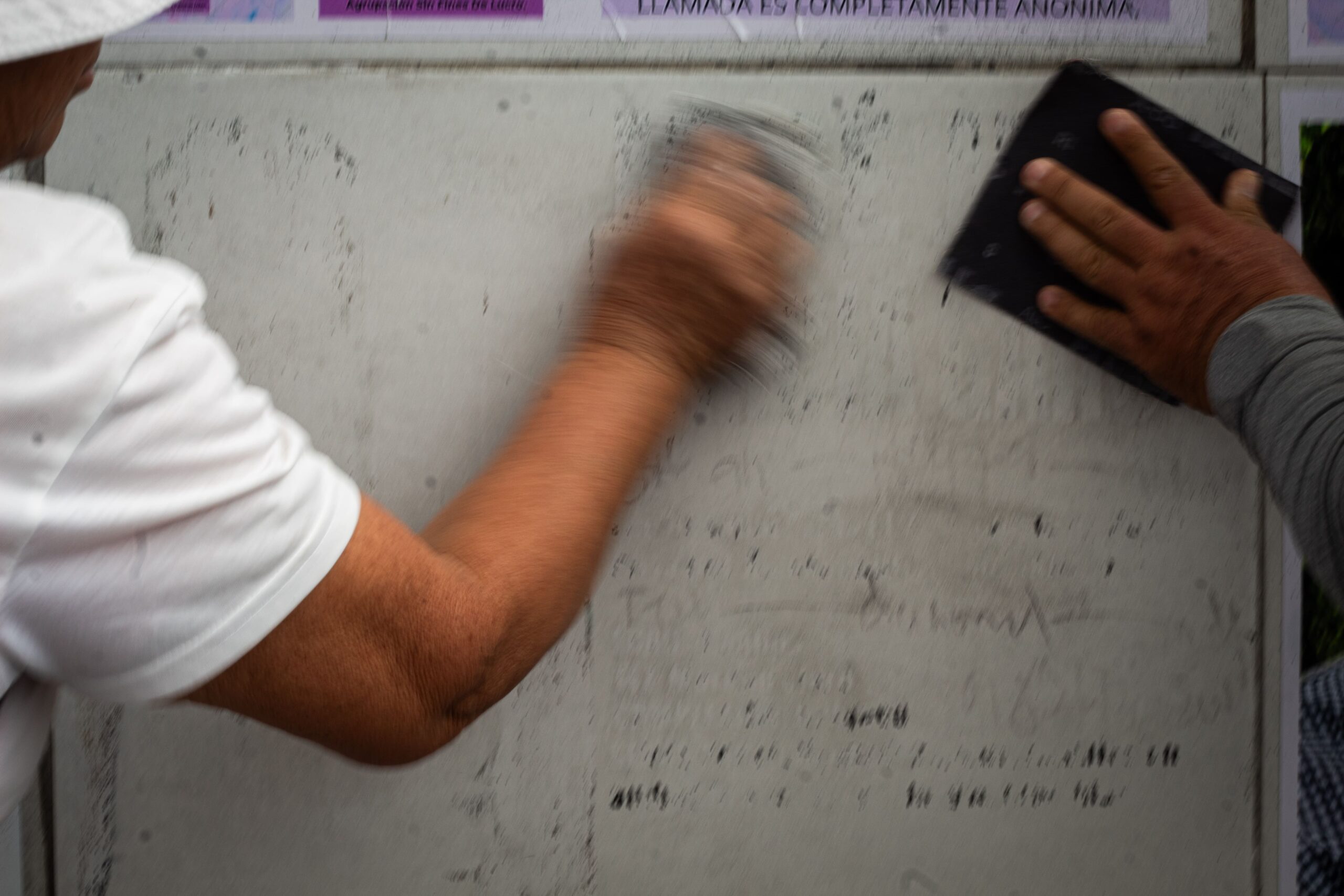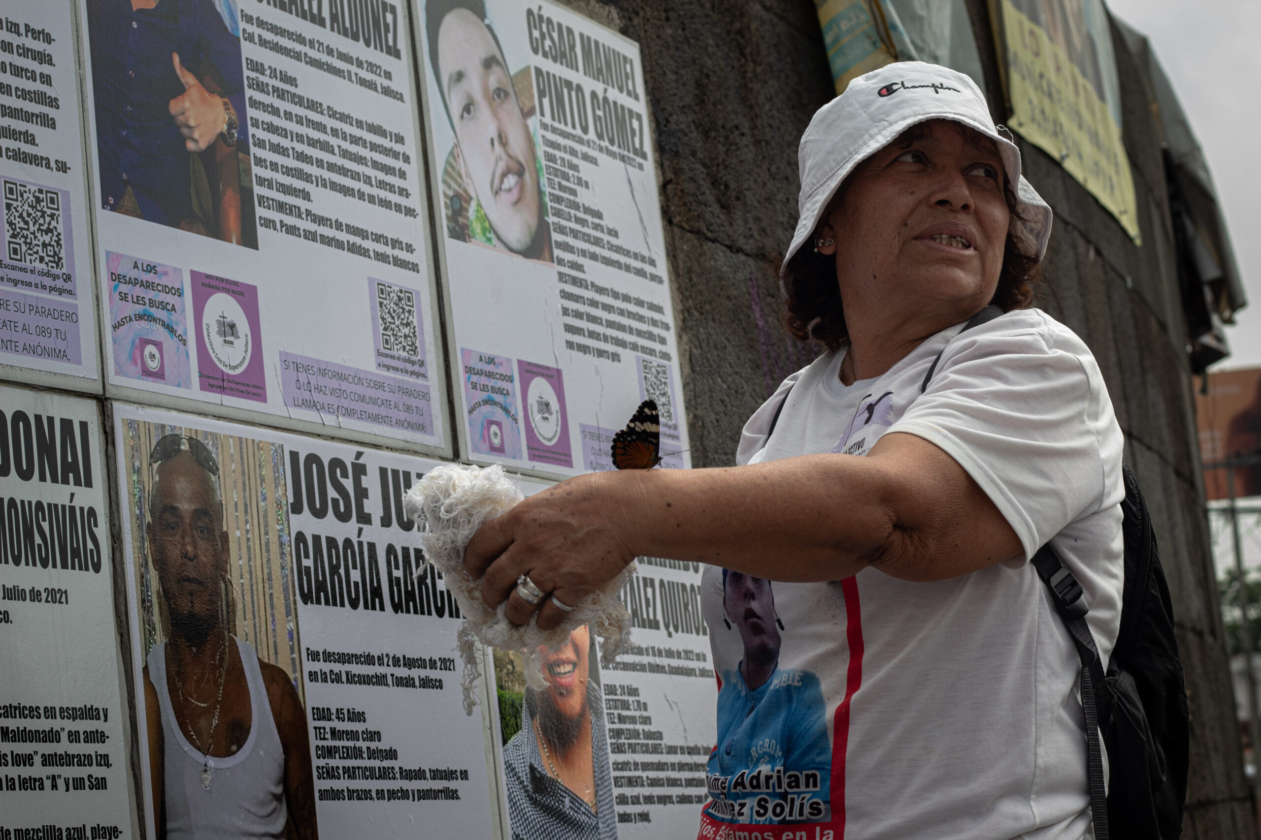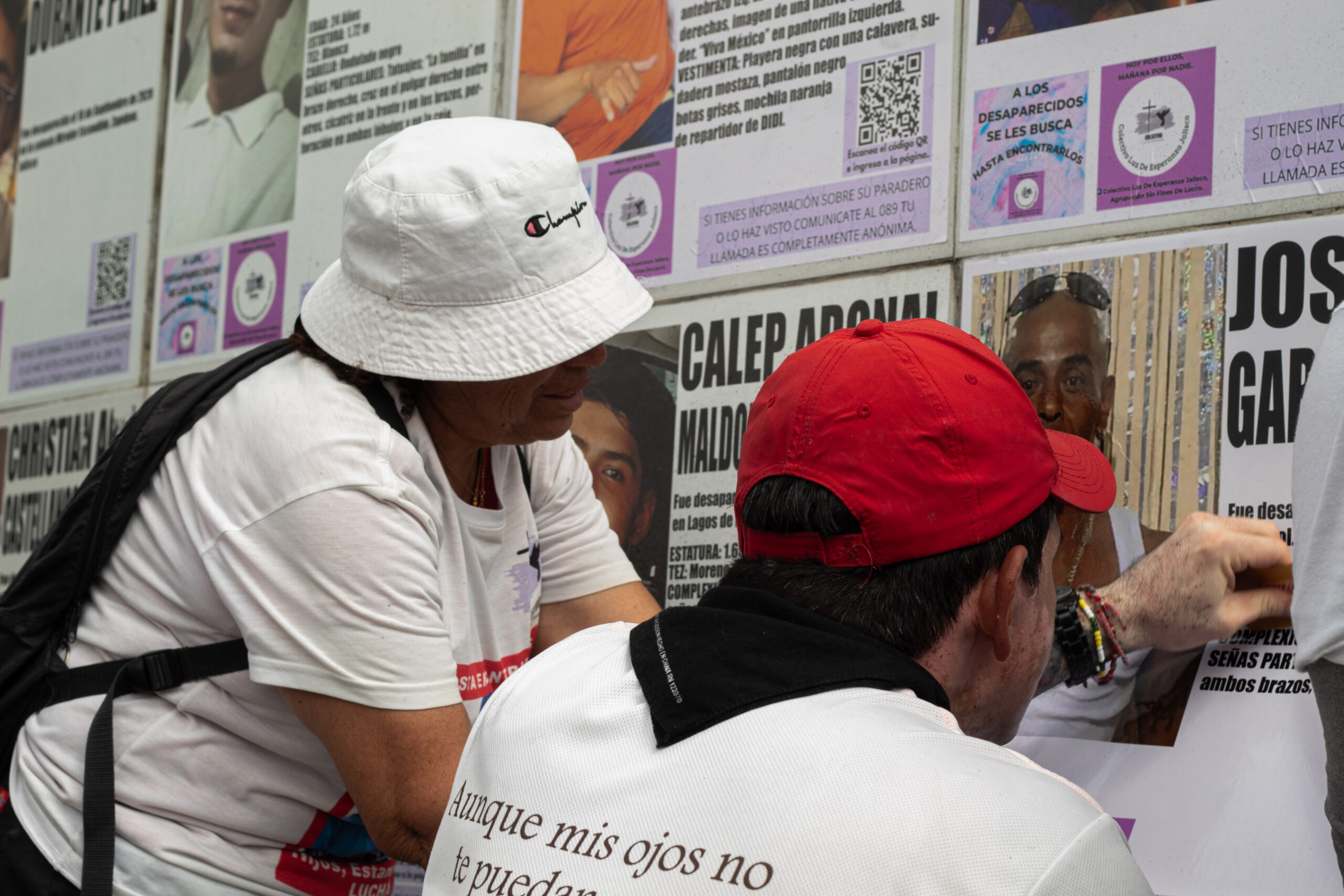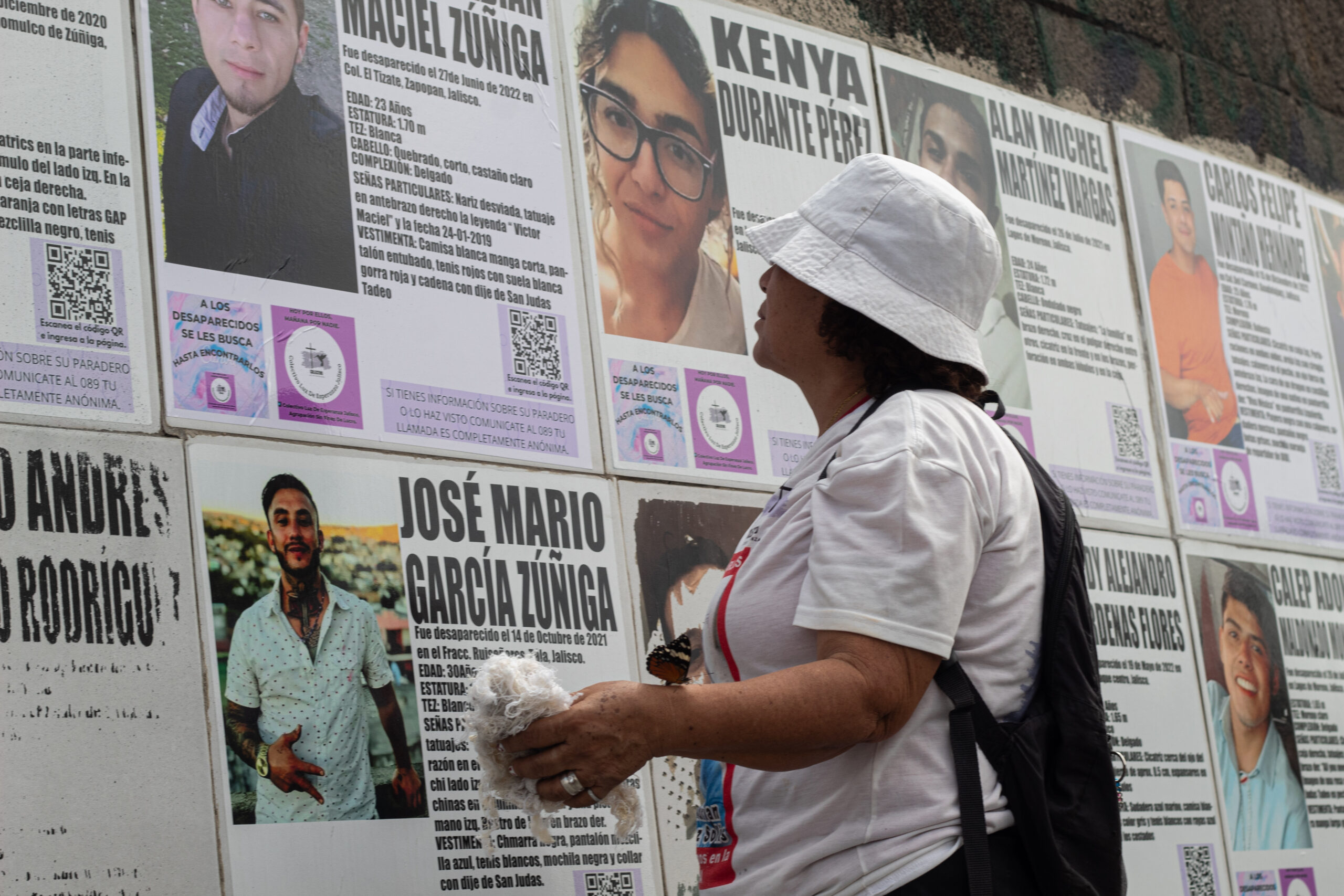 Familias buscadoras que integran el colectivo Luz de Esperanza se congregaron en la Glorieta de las y los Desaparecidos de Jalisco para renovar sus losetas de búsqueda, las cuales por las inclemencias del tiempo y el grafiti borraron los rostros y nombres de sus amores desaparecidos, esta acción forma parte de los procesos de cuidado ante las amenazas de quitar de la Glorieta a los cientos de personas que han sido desaparecidas en Jalisco.
