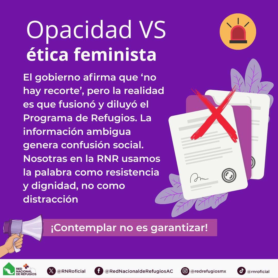 “Los refugios son la diferencia entre la vida y la muerte. Invisibilizarlos en el presupuesto es invisibilizar a miles de mujeres, niñas y niños frente a la violencia feminicida.”, Red Nacional de Refugios.
