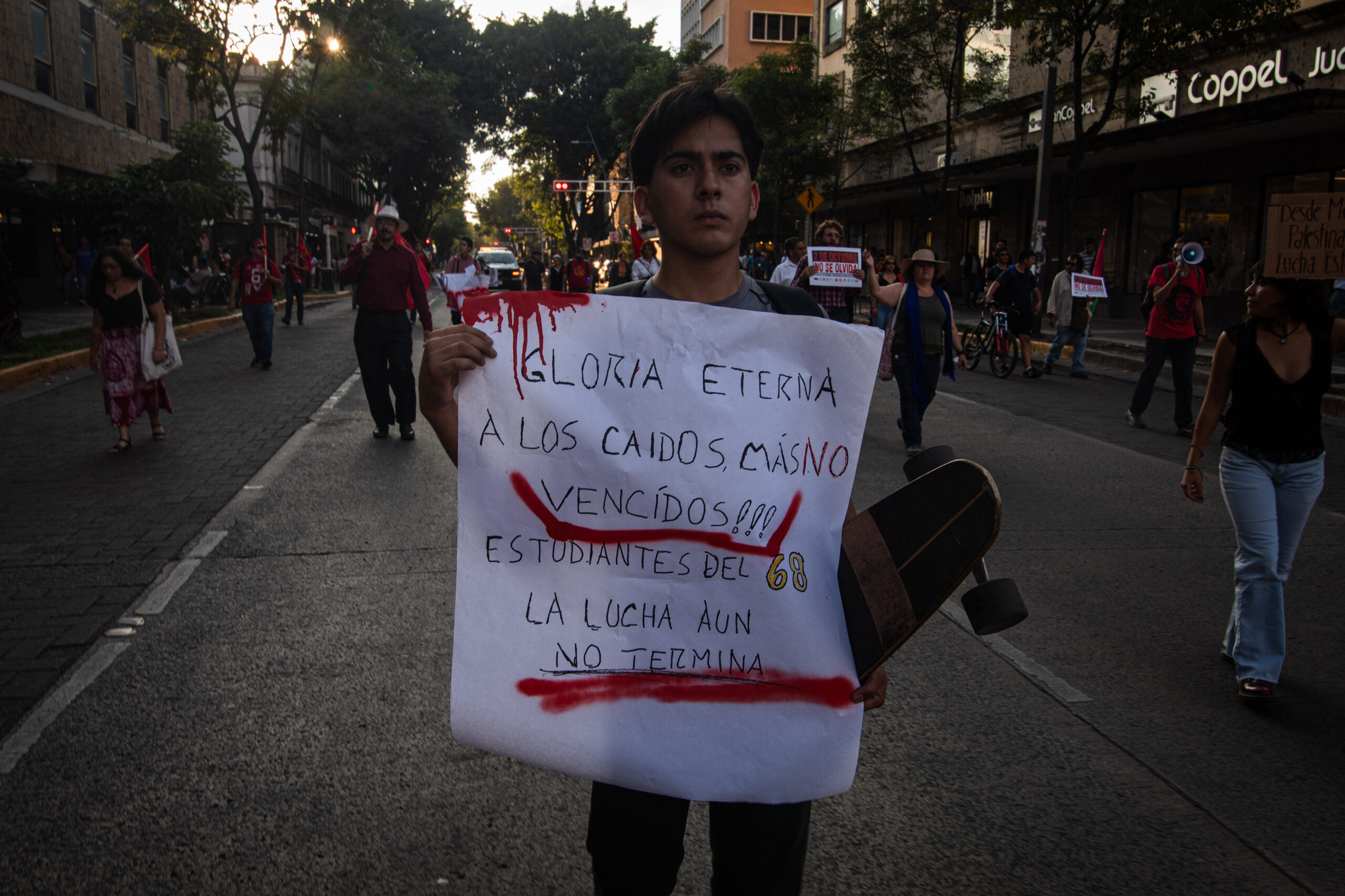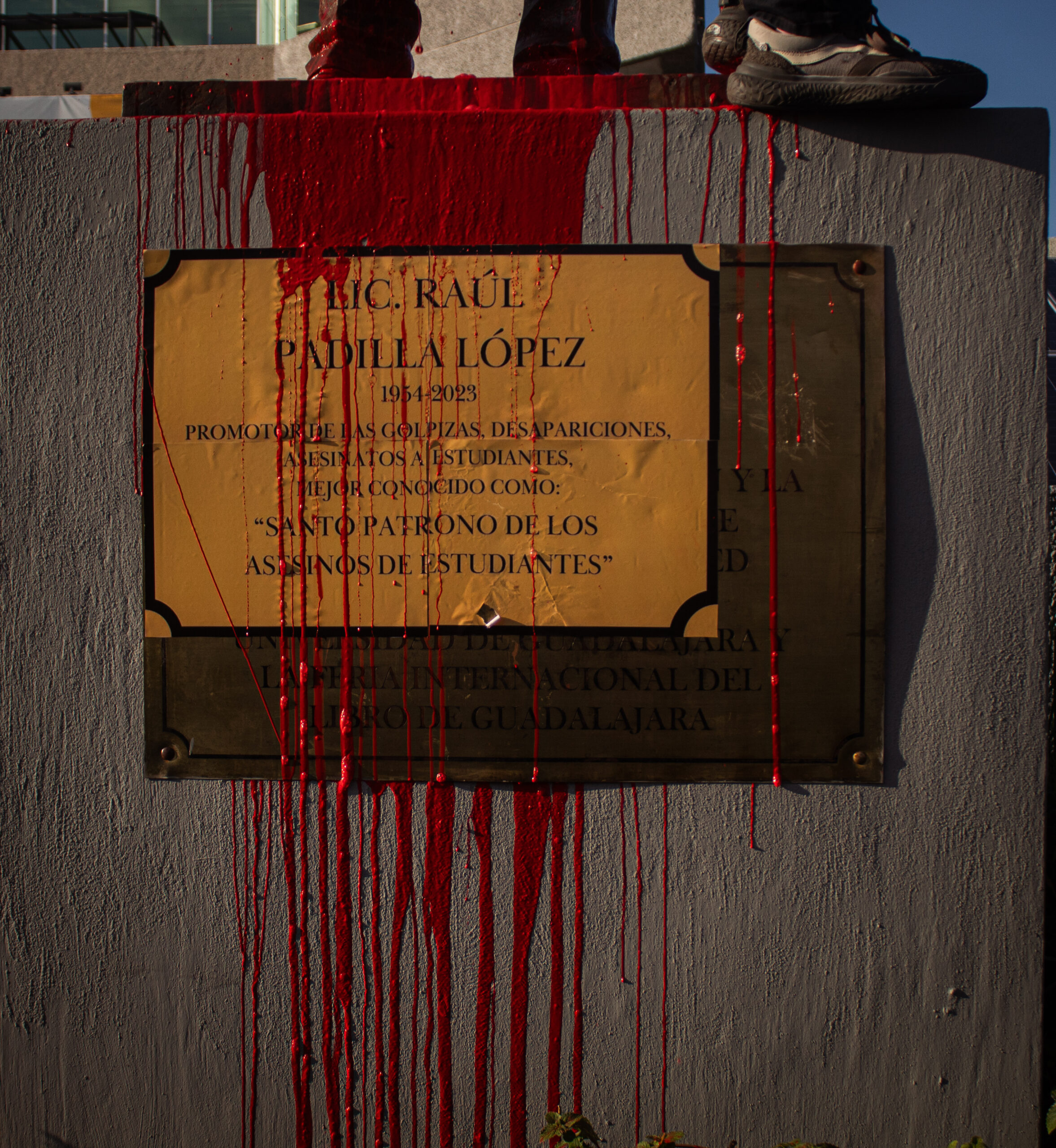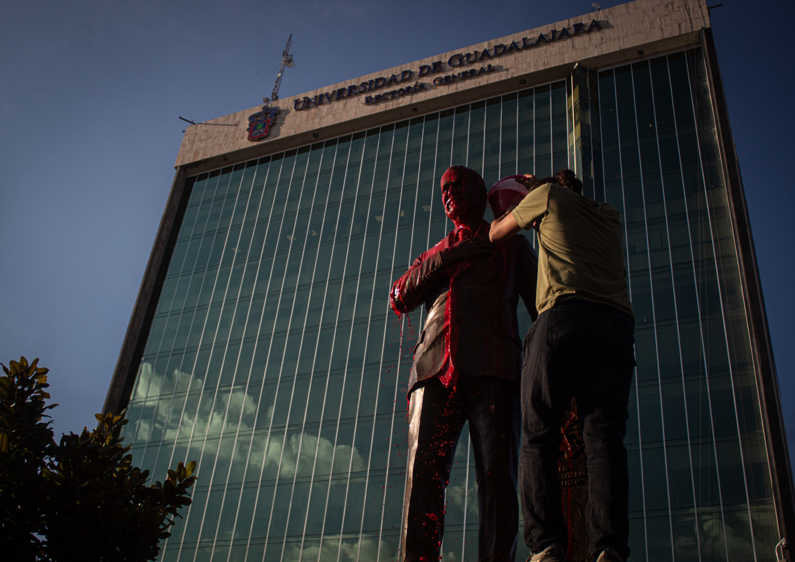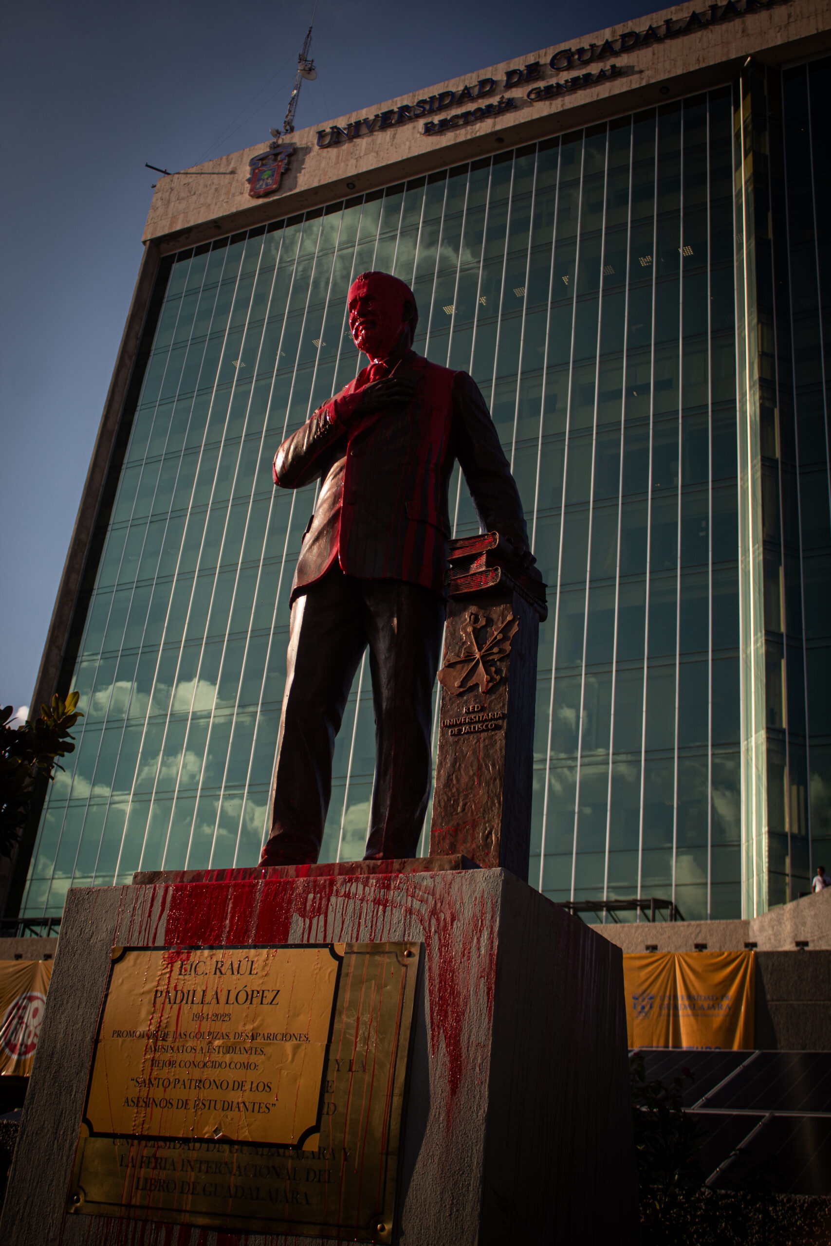 Las calles de Guadalajara, Jalisco, hicieron memoria y cientos de personas marcharon para que jamás se olvide la matanza perpetrada por el Estado Mexicano, el 2 de octubre de 1968 en Tlatelolco. Aquí una serie de postales fotográficas en las que destaca la intervención de la estatua del líder moral de la Universidad de Guadalajara, Raúl Padilla, a quienes las personas manifestantes señalaron de ser responsable de reprimir de todos aquellos estudiantes que criticaran o cuestionaran las políticas universitarias.
