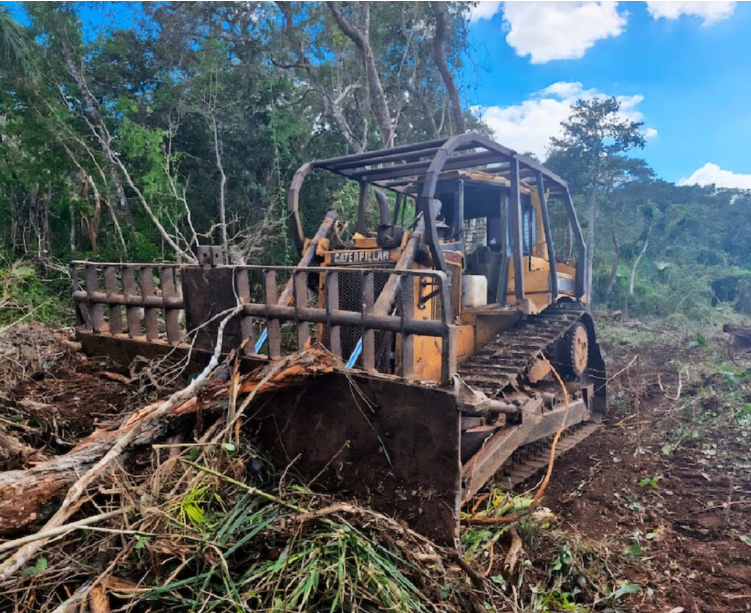 Se detecta maquinaria con la que extraen la vegetación talada. Fuente: Profepa.