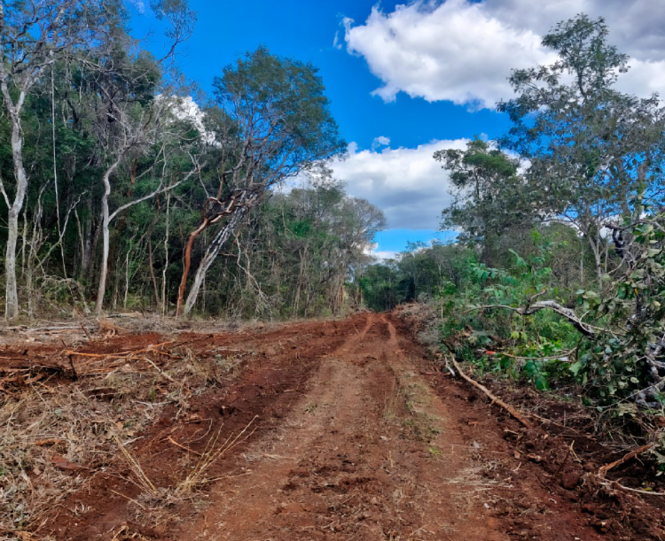En las imágenes se observan maquinarias y campos deforestados, incluso fumigaciones con drones.