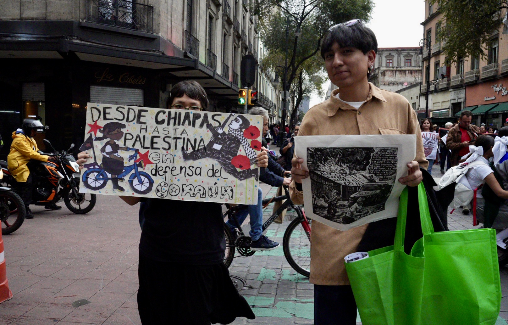 El 10 de octubre, en la Ciudad de México, un contingente de alrededor de 200 personas entre voceros del EZLN, asociaciones civiles, solidarios y medios de comunicación marcharon desde el Antimonumento Palestina Libre hasta el Zócalo de la ciudad.
