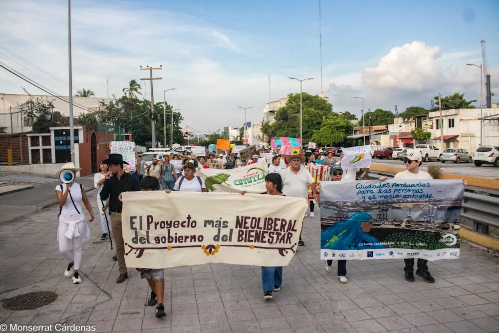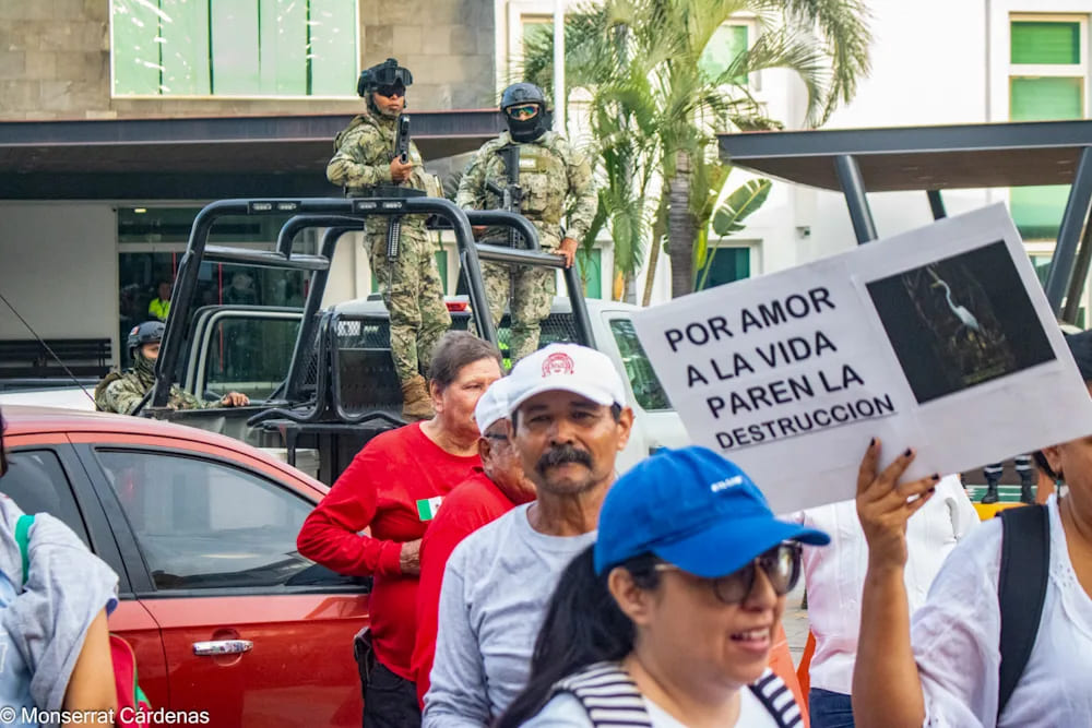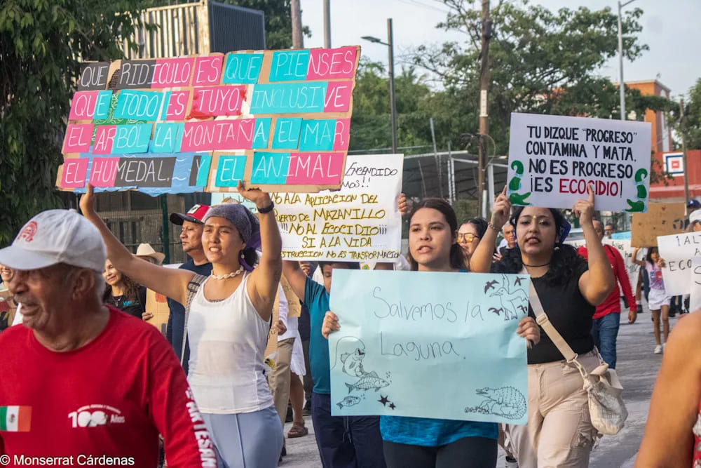 “Esto significa perder una de las barreras naturales más efectivas contra los impactos del cambio climático, como el aumento del nivel del mar, la erosión costera y la intensificación de tormentas”, señalan las y los manifestantes a su llegada a la explanada del Pez Vela, en el Centro del municipio, justo donde se celebra la Primera Feria para la Concienciación sobre los Tsunamis, organizada por el Ayuntamiento y la Dirección de Protección Civil de Manzanillo.