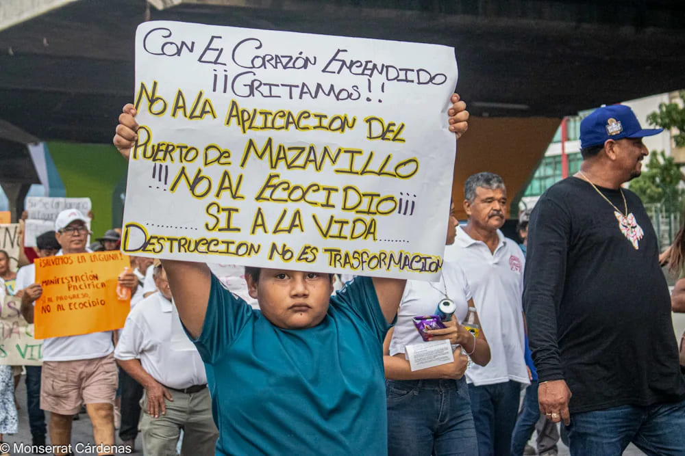 “Esto significa perder una de las barreras naturales más efectivas contra los impactos del cambio climático, como el aumento del nivel del mar, la erosión costera y la intensificación de tormentas”, señalan las y los manifestantes a su llegada a la explanada del Pez Vela, en el Centro del municipio, justo donde se celebra la Primera Feria para la Concienciación sobre los Tsunamis, organizada por el Ayuntamiento y la Dirección de Protección Civil de Manzanillo.