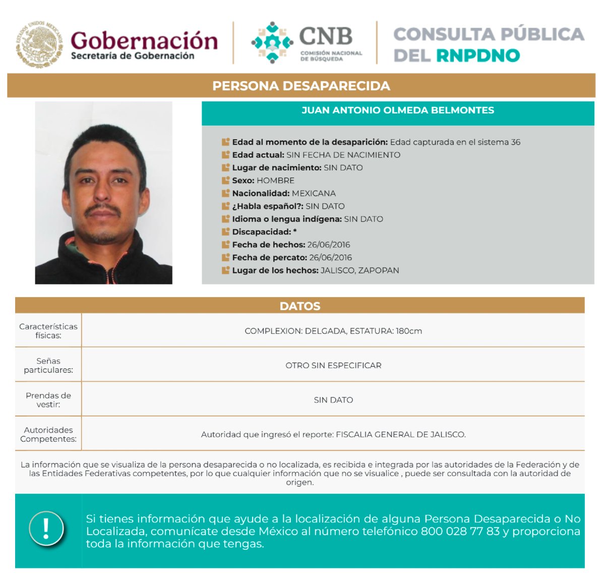 Me pusieron a escribir cómo me he sentido con todo esto y la verdad tenía tres años cuando lamentablemente pasó lo de mi tío Juan Antonio Olmeda Belmontes, quien fue desaparecido el 26 de junio de 2016, en Zapopan. No tengo ningún recuerdo de él, pero sé que en ese poco tiempo a mi tío le gustó mucho conocerme y darme amor, pero a mí me hubiera gustado sentir su cariño, sus abrazos, sus risas y todo de él.