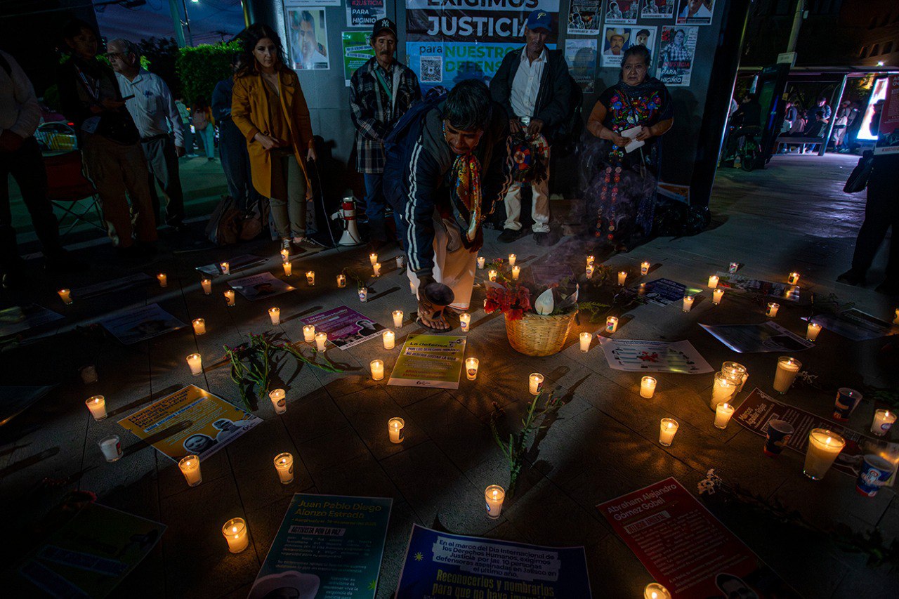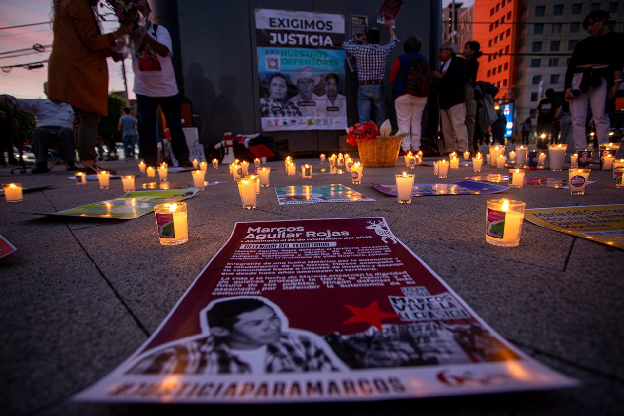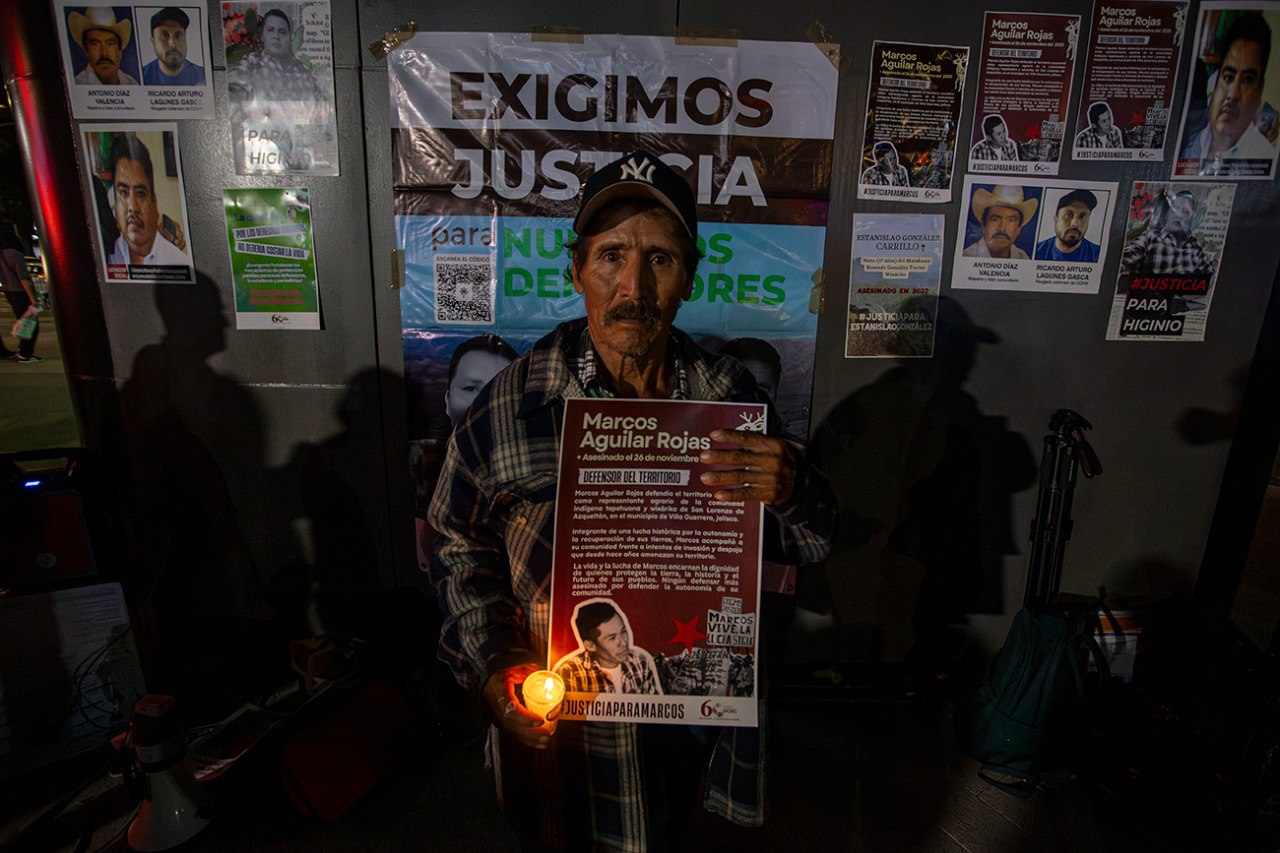 Organizaciones, ciudadanxs y representantes de la Comunidad Indígena Autónoma Wixárika y Tepehuana de San Lorenzo de Azqueltán realizaron una velada en la Feria Internacional del Libro de Guadalajara (FIL) para exigir justicia por el asesinato de su autoridad agraria, Marcos Aguilar Rojas, y por todas las personas defensoras de la tierra, el territorio y los derechos humanos asesinadas en Jalisco durante este año. Entre veladoras, flores y consignas, denunciaron que “nos están matando por nuestras tierras” y llamaron a la solidaridad nacional e internacional para frenar la violencia y el despojo.