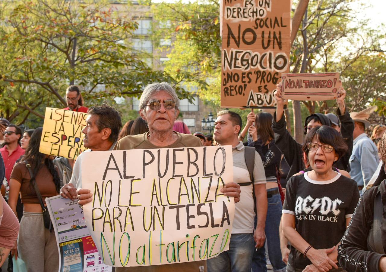 Al menos 300 personas manifestaron su inconformidad ante el aumento del transporte público en Jalisco aprobado recientemente. Ante un aumento del 46% acudieron distintos grupos de la sociedad. La organización fue encabezada por estudiantes autónomos además de, al menos, 12 colectivos ciudadanos, así como familias, jóvenes, adultos mayores e infancias, quienes exigieron que se detenga el aumento previsto para abril de este año.
