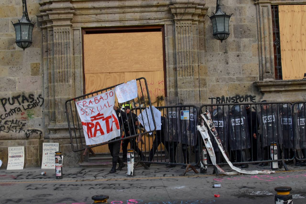 Aunque la manifestación se llevó con normalidad, al llegar al punto final, frente a Palacio de Gobierno, tras realizar pintas en el mismo edificio, llegaron decenas de policías antimotines, quienes reacomodaron las vallas que protegen al mismo. Lo que ocasionó que los manifestantes se movilizaran hasta el andador Palestina. Hasta ese punto fueron detenidas arbitrariamente cuatro personas, dos de ellas estudiantes.