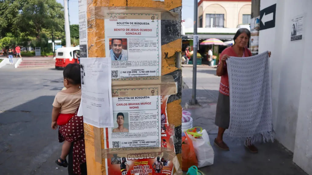 Por ejemplo, la ficha de Benito de Jesús Olmedo González, desaparecido en Chiapa de Corzo, a una hora de distancia, el 27 de octubre de 2025, fue pegada por la Comisión Estatal de Búsqueda de Personas, y la de Carlos Brayan Muñoz Wong, desaparecido unos días antes, el 13 de octubre, en Berriózabal, fue su madre quien la colocó.