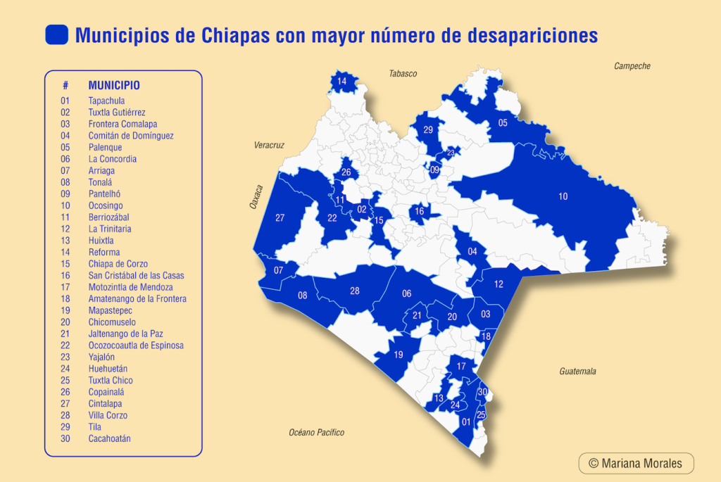 A nivel nacional, suelen desaparecer más hombres que mujeres, pero Chiapas es uno de los estados —junto con Yucatán, Campeche, Oaxaca, Tabasco, Tlaxcala y Aguascalientes— donde ocurre lo contrario, son más mujeres las desaparecidas, y el aumento más marcado es en niñas y en adolescentes, de acuerdo con Data Cívica.