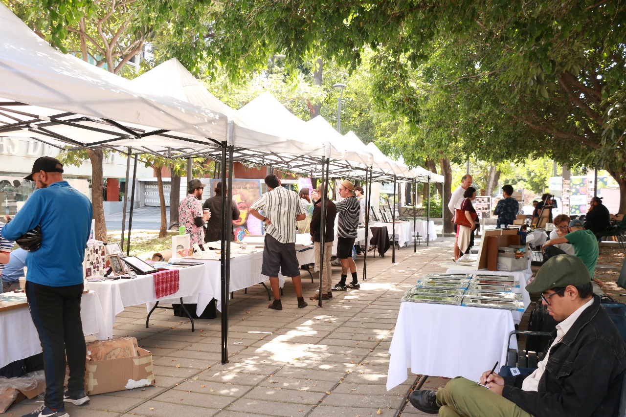 De las 10 de la mañana a las 3 de la tarde los artistas muestran sus creaciones y conversan con los compradores potenciales. Todos tienen un contexto y un bagaje distinto entre sí, pero eso no es limitante para compartir su pasión por lo que hacen.
