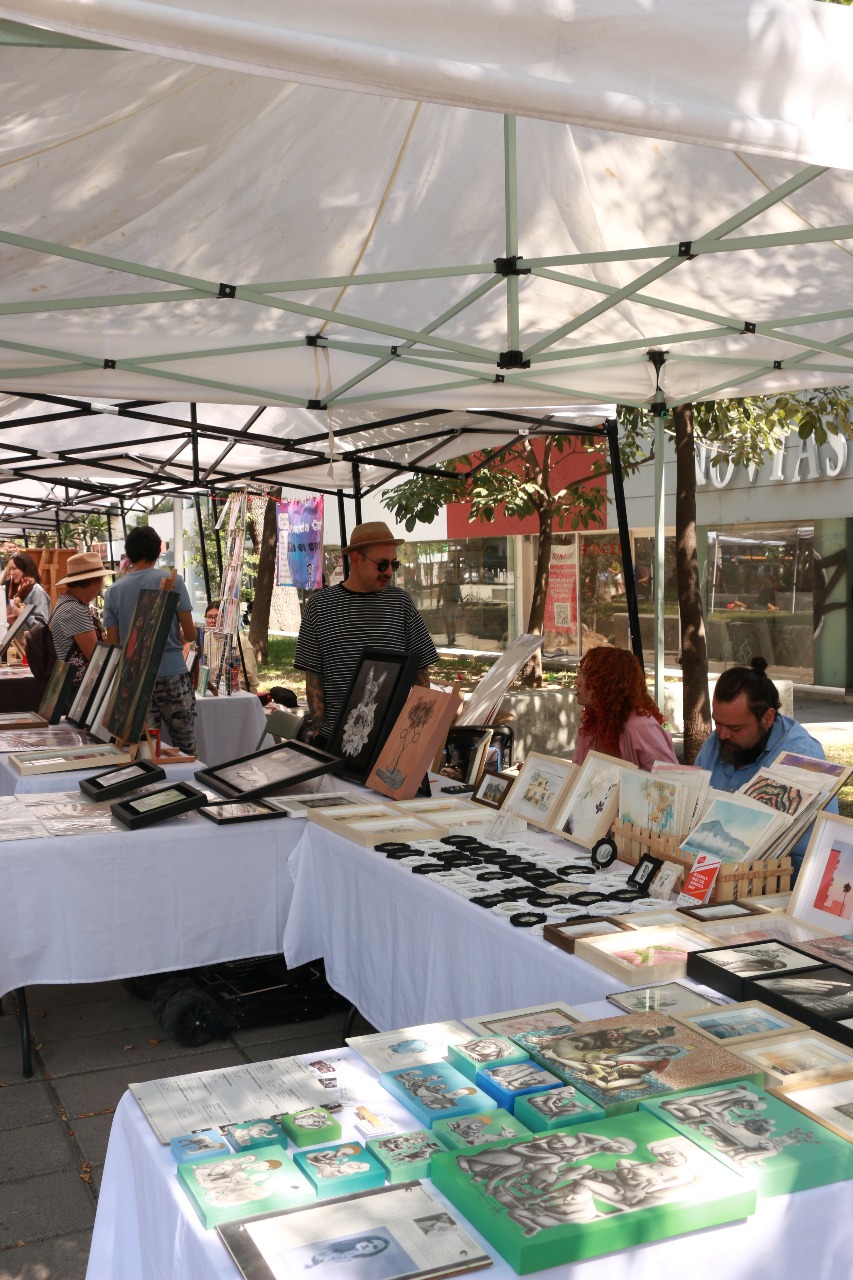 Cada domingo, más de 40 artistas se reúnen sobre el andador Chapultepec para exponer y comercializar su arte. Fotografía Bruno Aguirre