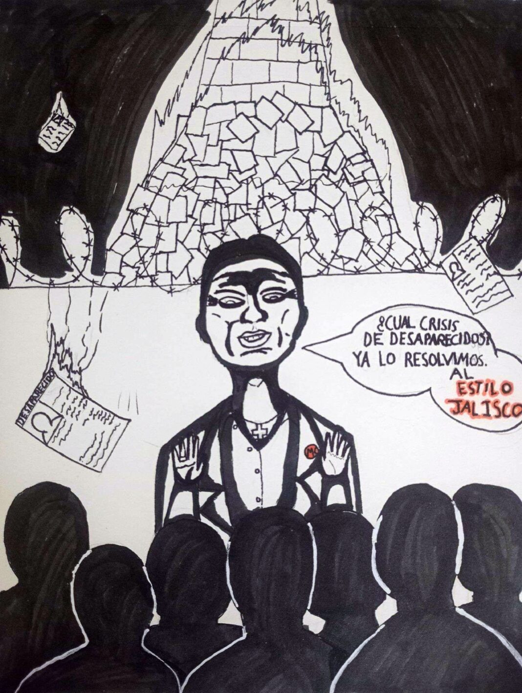 Que nada sucumba esos rostros. Que nada nos distraiga de aquellas losetas, carteles, lonas y pancartas. Que nunca olvidemos lo que es importante. Que no quitemos nuestros ojos de aquella glorieta ni de ningún antimonumento que pueda mostrar como son las cosas “al estilo Jalisco”.