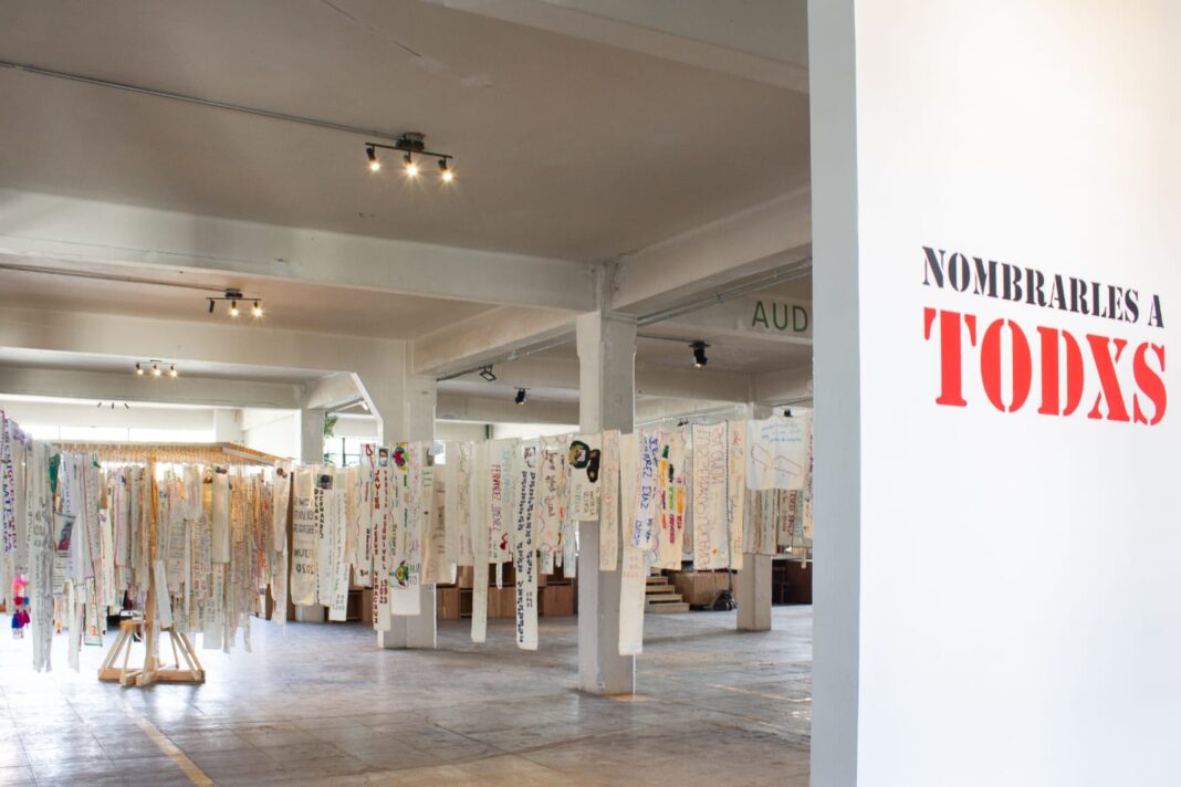 Nombrarles a todxs es una instalación y archivo textil impulsado por la artista Fabiola Rayas y el colectivo Familiares Caminando por Justicia que, a partir de nombres compartidos directamente por las familias, construye un registro colectivo sobre la desaparición forzada y otras violencias en México. Tras más de cuatro años de trabajo colaborativo, el proyecto se presenta por primera vez como obra independiente e inicia un recorrido por distintos estados.