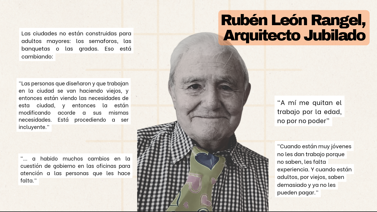 Alejandro Pérez Duarte, coordinador del Laboratorio del Hábitat para Personas Mayores del Instituto Tecnológico de Estudios Superiores de Occidente (ITESO), especialista en envejecimiento y movilidad, es contundente al respecto: “la vejez no es sinónimo de incapacidad. El problema es que nuestras políticas y empresas la siguen tratando como tal. Eso condena a miles de personas a la pobreza y a la invisibilidad.”.