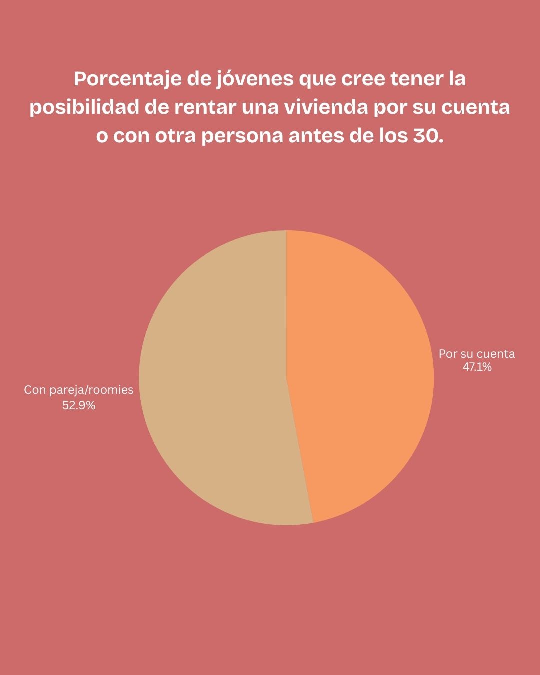 No obstante, el 52% de las y los encuestados declaró que sería viable rentar en compañía de roomies o una pareja, ya que los costos se dividirían.