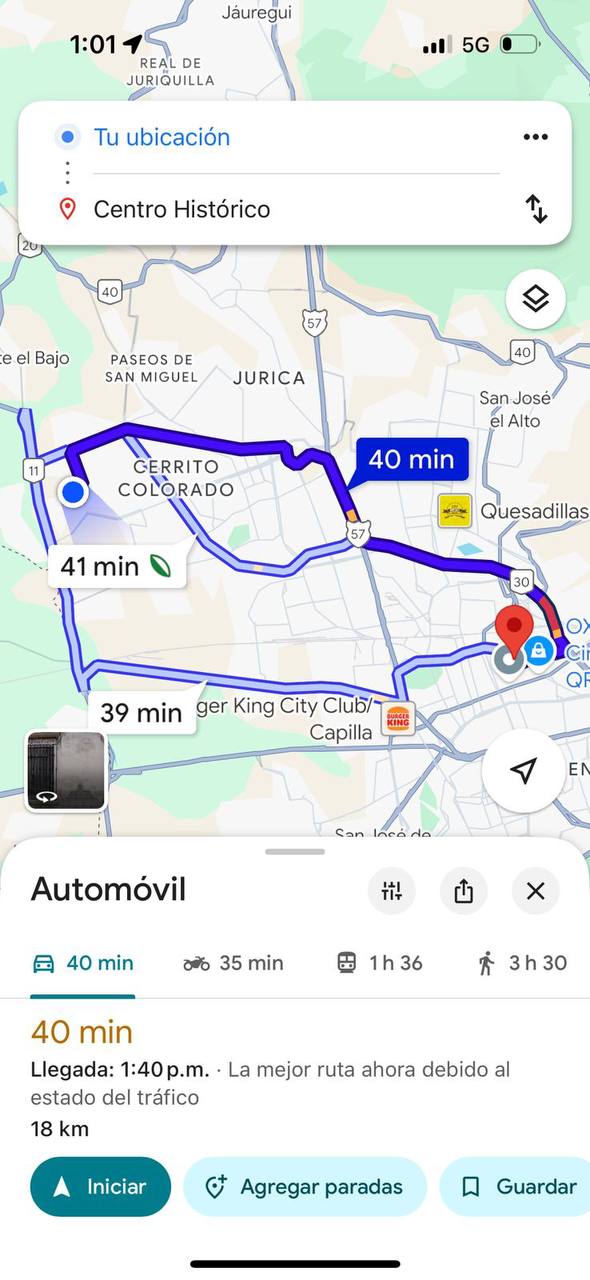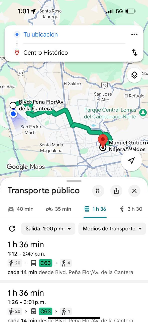 Comparación de trayectos en transporte público y automóvil particular entre desarrollos inmobiliarios de “bajo costo” y el centro de la ciudad de Querétaro.