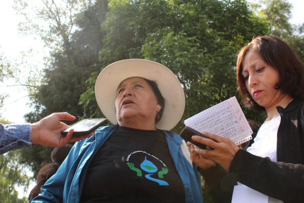 Chabe es entrevistada durante la caravana del #ToxiTourMéxico, realizada en diciembre de 2019 para visibilizar los impactos socioambientales causados por la industria. (CAV)