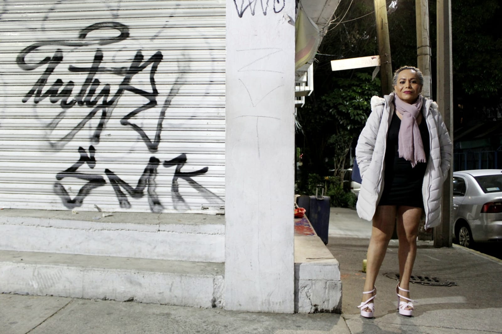 “En el momento en que iniciaron las obras desde el año pasado, comenzaron las interferencias en mi día a día. Empezaron a poner el material en nuestros puntos, en nuestras esquinas; sin avisar, un día llegamos y ya estaba todo: arena, grava, adoquines. No teníamos ni para dónde hacernos”, comparte Sandra, activista por los derechos humanos y trabajadora sexual en Calzada de Tlalpan desde hace 30 años.