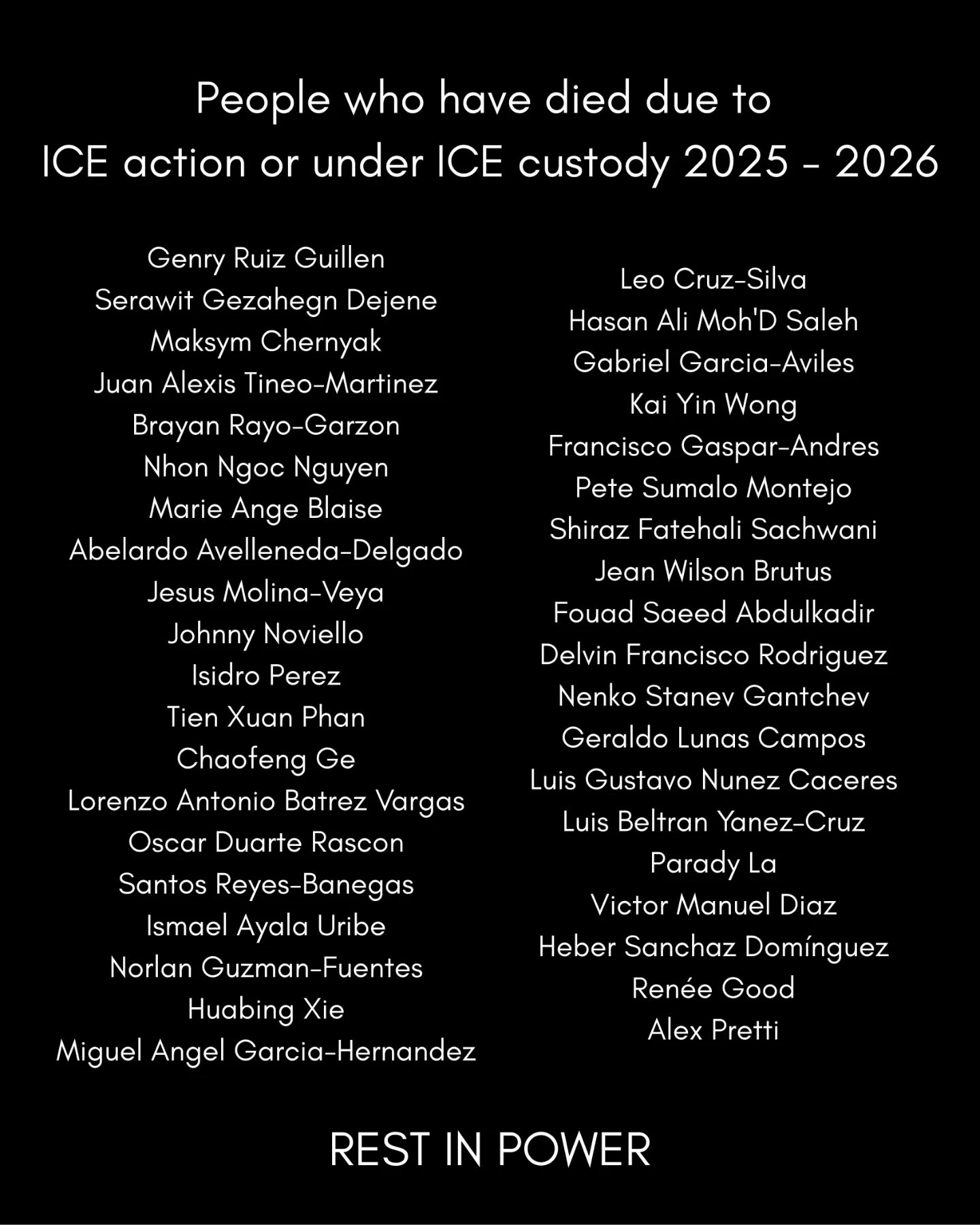 Casos como el asesinato del activista comunitario Alex Pretti y la poeta Renee Nicole Good en Minneapolis, han sentado el precedente del cruel y criminal actuar del ICE, sin tener repercusiones contra los agentes agresores. Estas ejecuciones han causado gran indignación y rabia en la comunidad de Minneapolis y a nivel mundial, convocando a movilizaciones y protestas contra las políticas migratorias.
