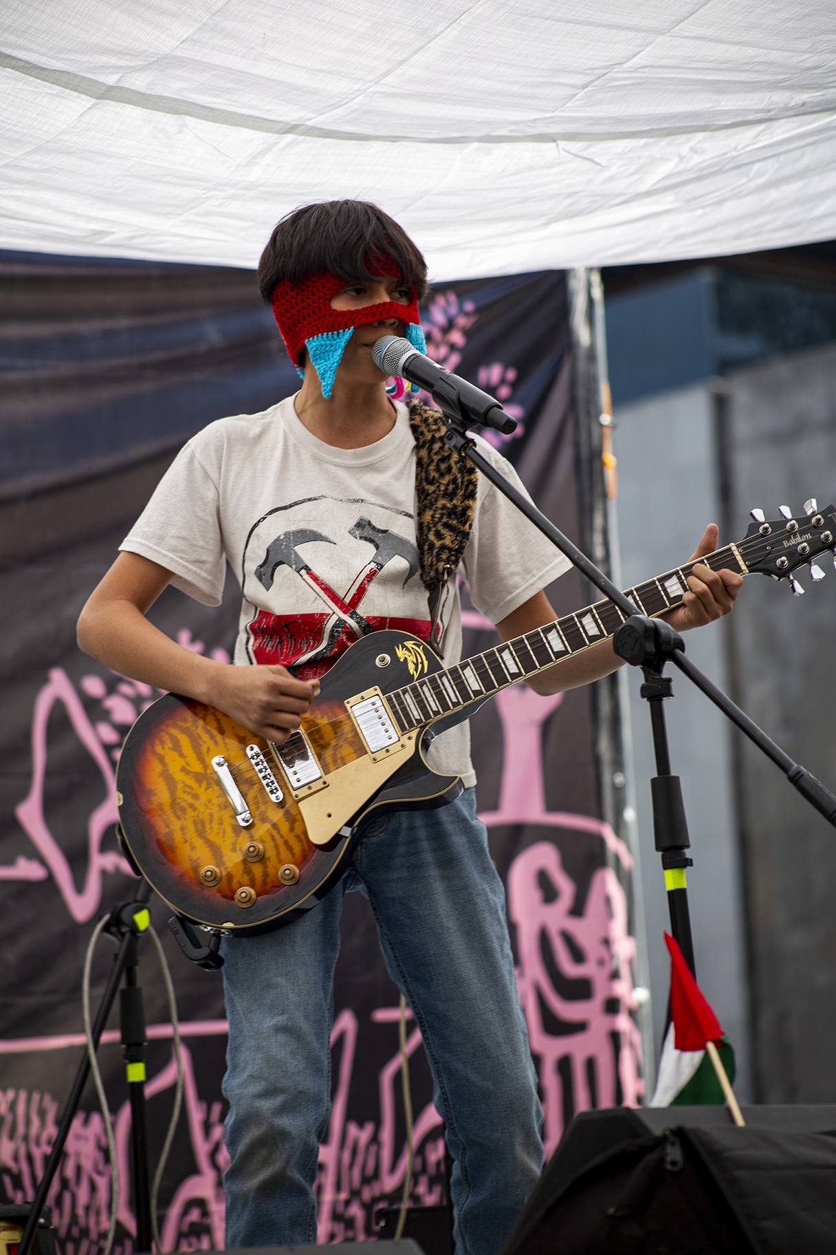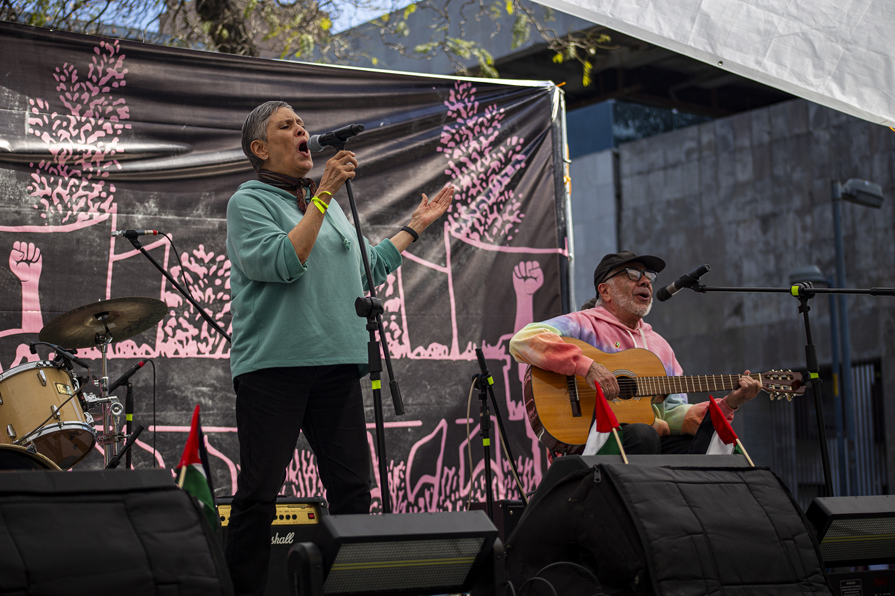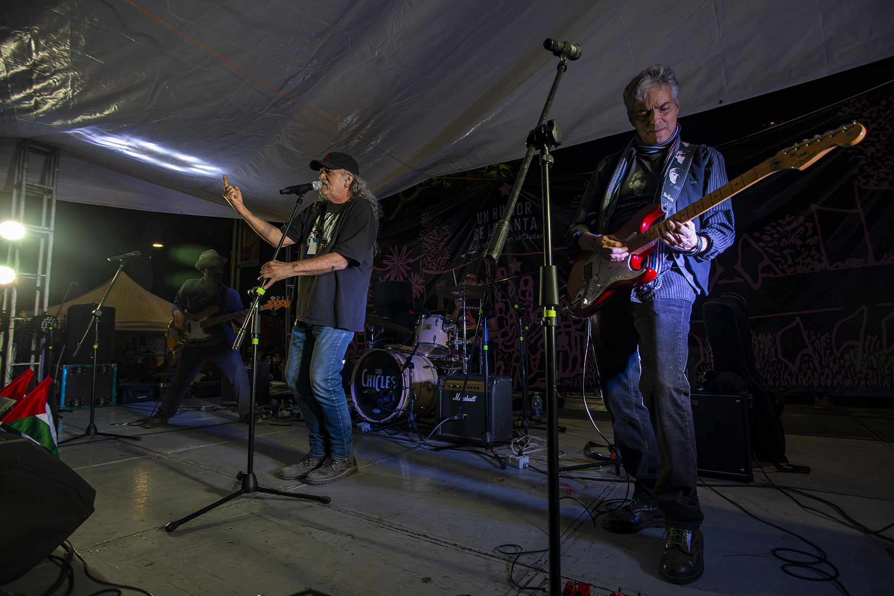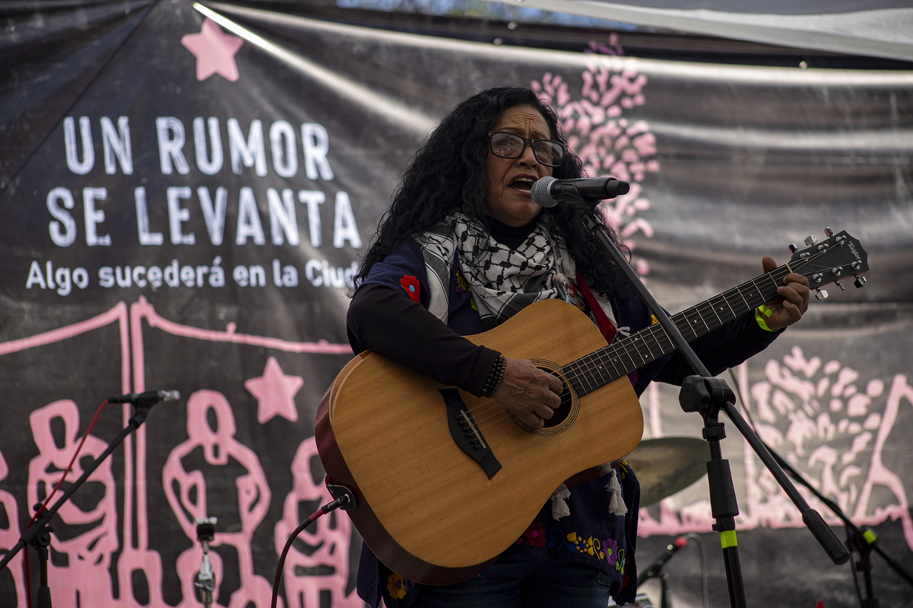 A las cuatro de la mañana, cuando la ciudad aún no despierta, la Plaza Palestina Libre ya estaba en movimiento. Frente a la Secretaría de Relaciones Exteriores, a un costado del Hemiciclo a Juárez —espacio que la ciudadanía organizada ha resignificado— comenzaron a levantarse las primeras estructuras del escenario. Sonido, cables, lonas y mesas se acomodaban mientras el día clareaba. Así inició la jornada político-cultural Un rumor se levanta, un encuentro que, más que un festival, se convirtió en un ejercicio colectivo de memoria, denuncia y organización.