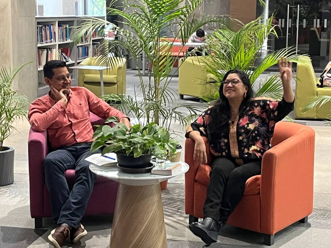La Biblioteca Dr. Jorge Villalobos Padilla, SJ., del ITESO abrió sus puertas a la charla “Narrativas del cruce: literatura, escritura y migración”, un diálogo entre la autora mexicana Reyna Grande y el académico y escritor Christopher Estrada. Ante un público numeroso, la conversación propuso pensar la escritura literaria como una frontera y explorar lo que implica atravesarla desde la experiencia migrante.