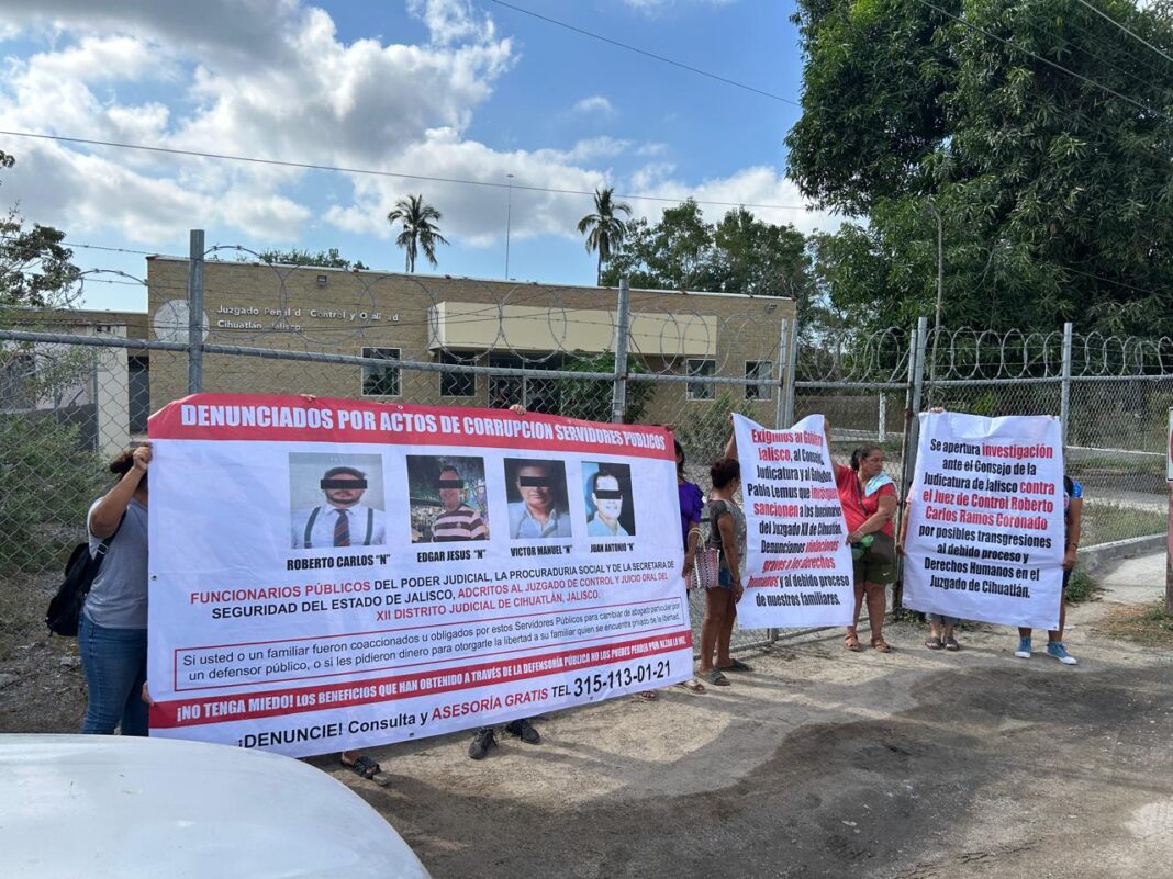 Un grupo de mujeres hicieron una manifestación este pasado viernes 13 de febrero, a las afueras del Juzgado de Control y Juicio Oral del XII Distrito Judicial ubicado en la localidad de El Aguacate, en el municipio de Cihuatlán, donde señalaron principalmente al juez Roberto Carlos Ramos Coronado, titular del juzgado y al defensor de Oficio, Edgar Romero Martínez, contra quienes hay varias quejas y denuncias por corrupción oficialmente presentadas ante las instancias correspondientes.