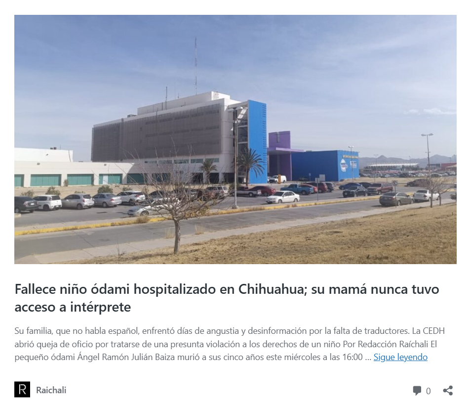 Este caso no es aislado. Raíchali ha documentado desde el año pasado las graves dificultades sistémicas que enfrentan comunidades indígenas, como la comunidad ódami de Rancho Los Julianes, para acceder a servicios de salud que sean culturalmente pertinentes, oportunos y de calidad. La muerte de Ángel Ramón es un triste recordatorio de que estas fallas estructurales se repiten.