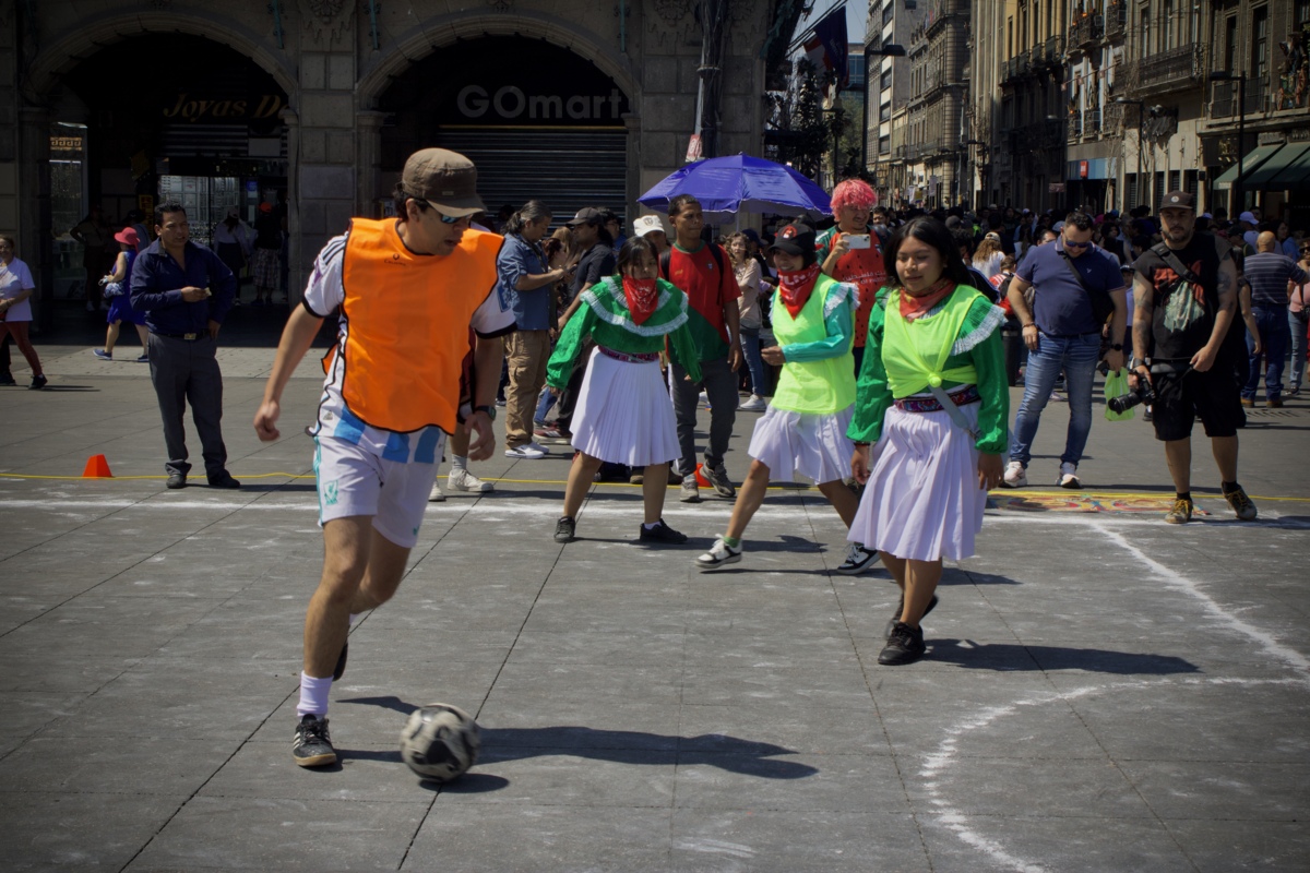 Como parte de la jornada, en el Zócalo iniciaron las “Retas por Samir: fútbol popular vs la FIFA”, una acción simbólica que convirtió el balón en herramienta de denuncia.