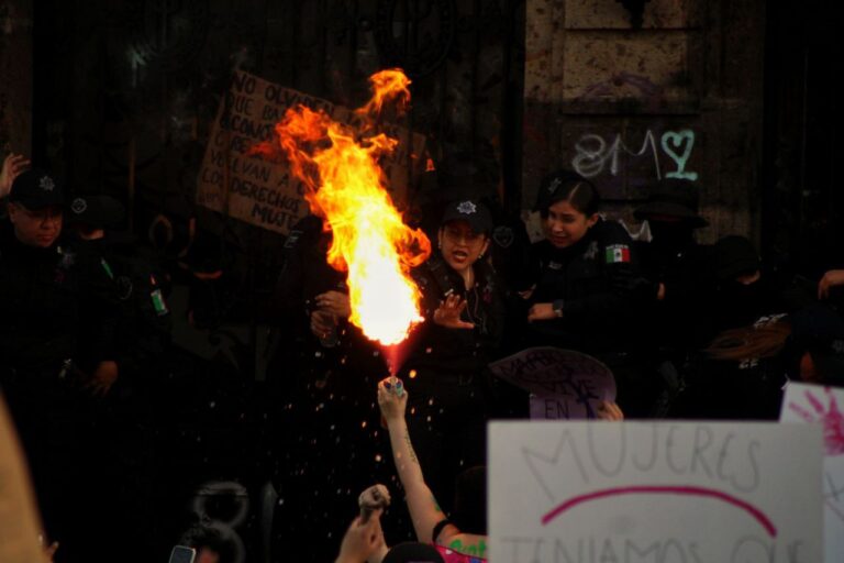 #8M2026 El cierre de la marcha “Juntxs contra todo despojo” en Guadalajara con motivo de las acciones de protesta por el Día Internacional de las Mujeres estuvo marcado por la represión que más de un centenar de agentes de la Policía Estatal ejercieron en contra de las manifestantes, quienes cuestionaron el despliegue de seguridad para … Sigue leyendo Denuncian represión policial en contra de manifestantes feministas afuera del MUSA en Guadalajara