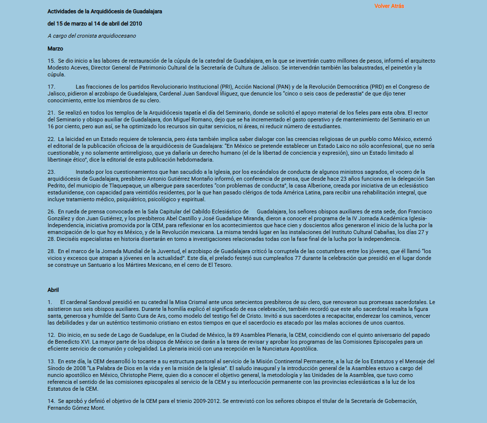 Publicación en el “Semanario” de la Arquidiócesis de Guadalajara
