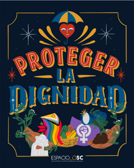 El sitio web “Proteger la Dignidad” está compuesto por cinco secciones ilustradas: ¿Qué es una persona defensora o periodista?, las obligaciones del Estado, normatividades, preguntas frecuentes y recomendaciones. Le acompañan, además, once posters con la leyenda “Yo defiendo” junto a una serie de frases que identifican la lucha por el territorio, las disidencias, la migración, feminismos, entre otras; además de cinco producciones de audio. Esto con el propósito de humanizar, dar rostro, voz y reivindicar la defensa y legitimidad de las personas periodistas y defensoras.