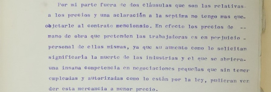 “El salario mínimo no se alcanzaba ni en casos excepcionales, debido a que, además del sindicato antes señalado, existía otro cuyas trabajadoras prestaban sus servicios por salarios aún menores. Su jornada de trabajo era de 9 horas diarias”, cita el documento.