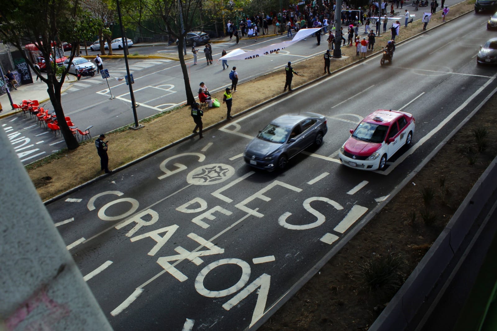 En ese punto, la protesta se desarrolló en relativa calma. Sin embargo, en otra vialidad, sobre Calzada de Tlalpan, un grupo distinto fue agredido por policías capitalinos.