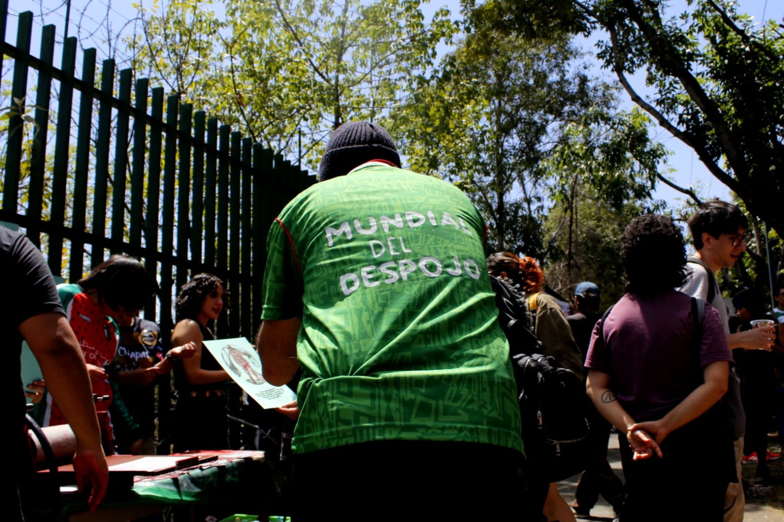 Sobre Avenida Periférico Sur, una de las principales vías de acceso al estadio, activistas de distintas causas —como el movimiento de las 40 horas, colectivos contra la turistificación y la gentrificación, y defensores del agua, la tierra y la vida— se plantaron con porterías de PVC y pancartas bajo la consigna «FIFA GO HOME».