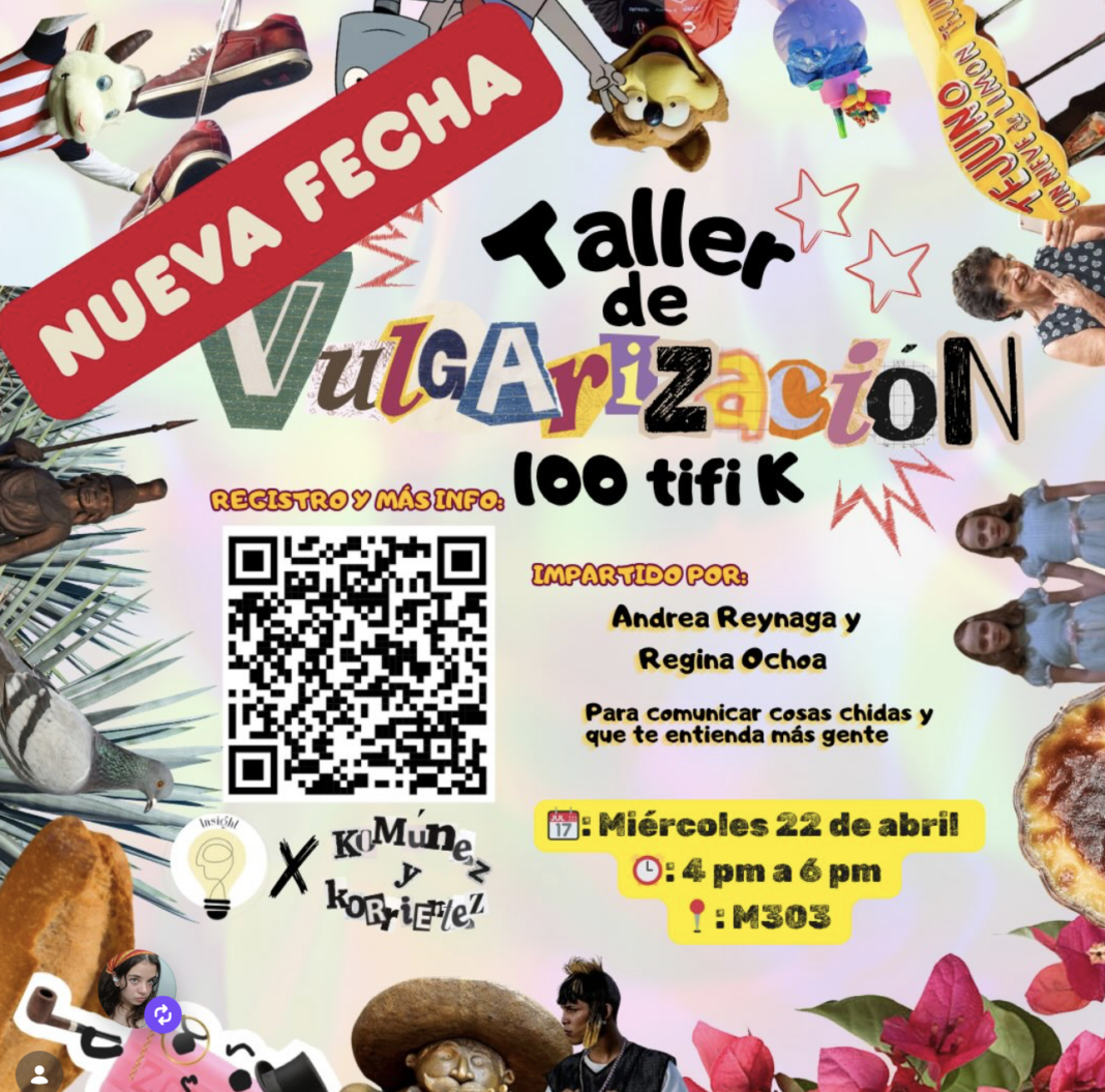 A partir de esta experiencia, surge el proyecto de divulgación Komunez y Korrientez, que busca trasladar estos hallazgos a un lenguaje más accesible. De ahí se desprende el taller “Vulgarización 100tifika”, pensado para difundir herramientas que permitan comunicar la investigación fuera de los espacios académicos. Su propuesta consiste en transformar contenidos especializados en formatos como memes o publicaciones en redes sociales, con el objetivo de acercar estos temas a un público más amplio.