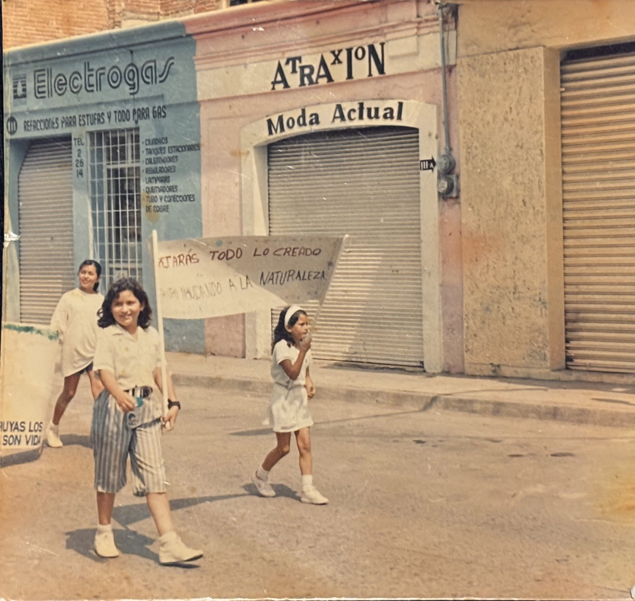 “No, al corte de los árboles, respeta la naturaleza”, fue la consigna que clamaba el grupo de cuatro niñas encabezado por la activista, que no cargaba con más que un pepcilindro de Looney Tunes. Finalmente, el entonces presidente municipal decidió recibirlas para discutir sus exigencias: “Le expliqué que no los podían cortar porque habían crecido juntos; que la tierra es de todos y que debemos respetar a la naturaleza, que los árboles nos dan oxígeno, y no sé qué”.