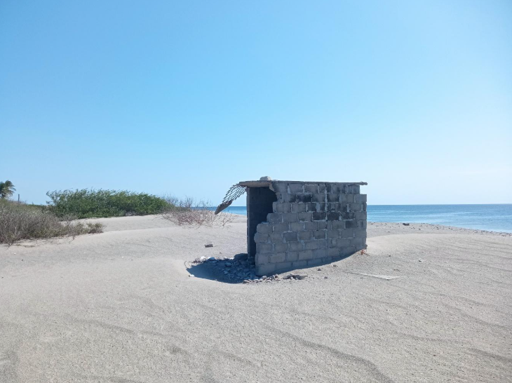 A escasos metros de la orilla, la Escuela Primaria Bilingüe “Constitución” sobrevive bajo el peligro de ser devorada por el mar. En octubre de 2024, la Coordinación para la Atención de los Derechos Humanos (CADH), recibió solicitudes urgentes para reubicar el plantel.