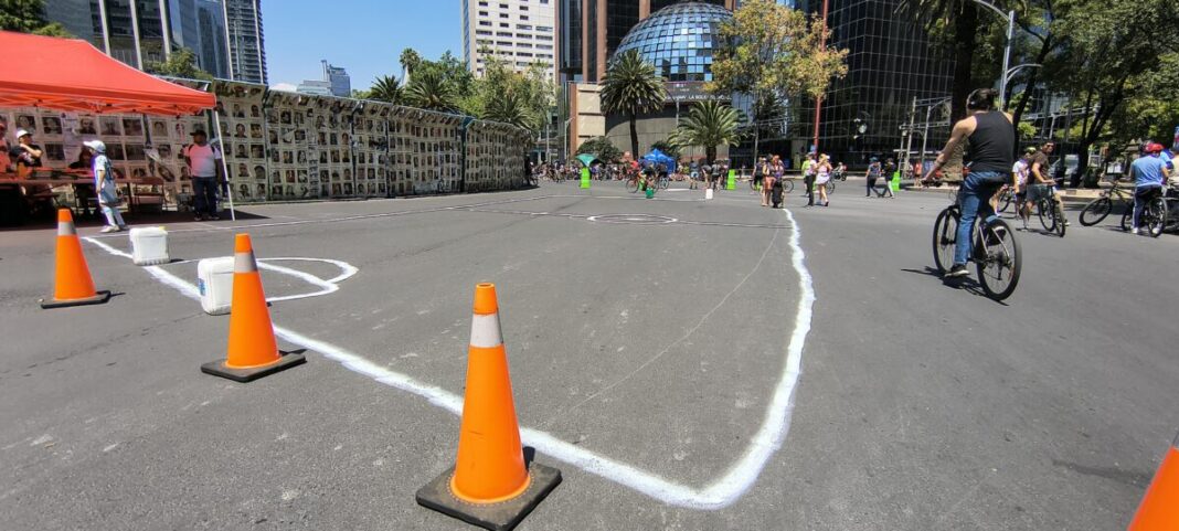 El colectivo “Hasta Encontrarles” organizó una cascarita en la Glorieta de las y los Desaparecidos, en el Paseo de la Reforma, para visibilizar que el 17% de los más de 133 mil desaparecidos en México son menores de 18 años, según cifras oficiales.