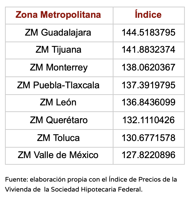 Sobre el precio de la vivienda, elaboró: ─Estamos reportando las estadísticas según la Sociedad Hipotecaria Federal. La tasa anual, en la zona metropolitana está creciendo encima del 7% y es de las más altas del país─