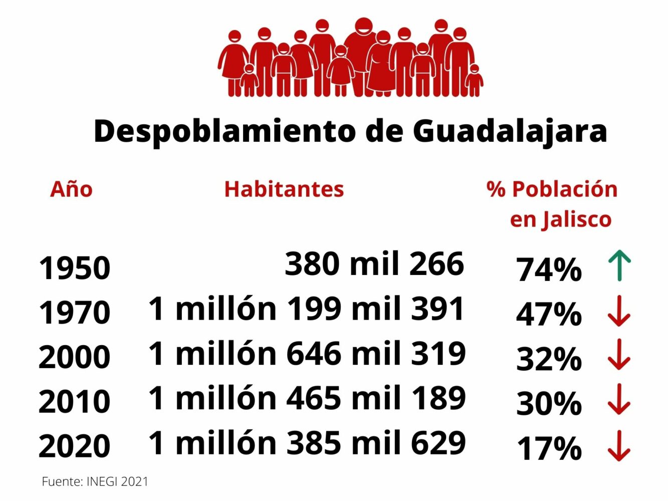 ─La mancha urbana ha crecido muchísimo en los últimos años, y eso es lo que ha ocasionado que la gente salga del municipio de Guadalajara la población de la zona metropolitana no ha caído, la que ha caído es la del municipio de Guadalajara porque los otros sí han crecido es el mercado de vivienda como está en toda la ZMG─