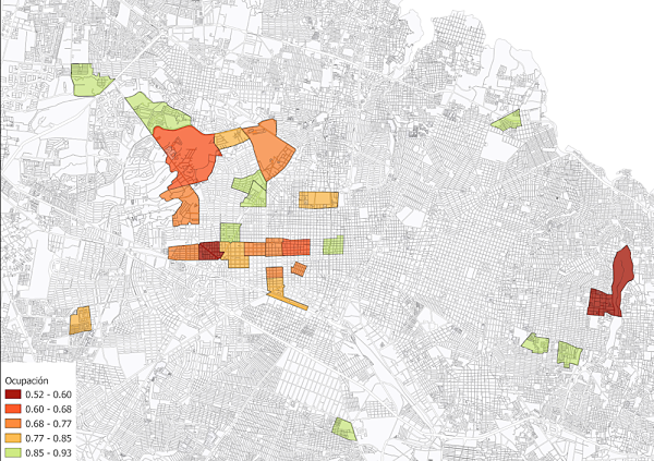 El resultado es que, aunque en Guadalajara y Zapopan la ocupación es de 87.3% y 84.3%, en la zona estudiada (tomando en cuenta toda la vivienda habitada y deshabitada de las AGEB estudiadas), la ocupación es de 81.1%. Es decir que, alrededor de estas torres, una de cada cinco viviendas está deshabitada.