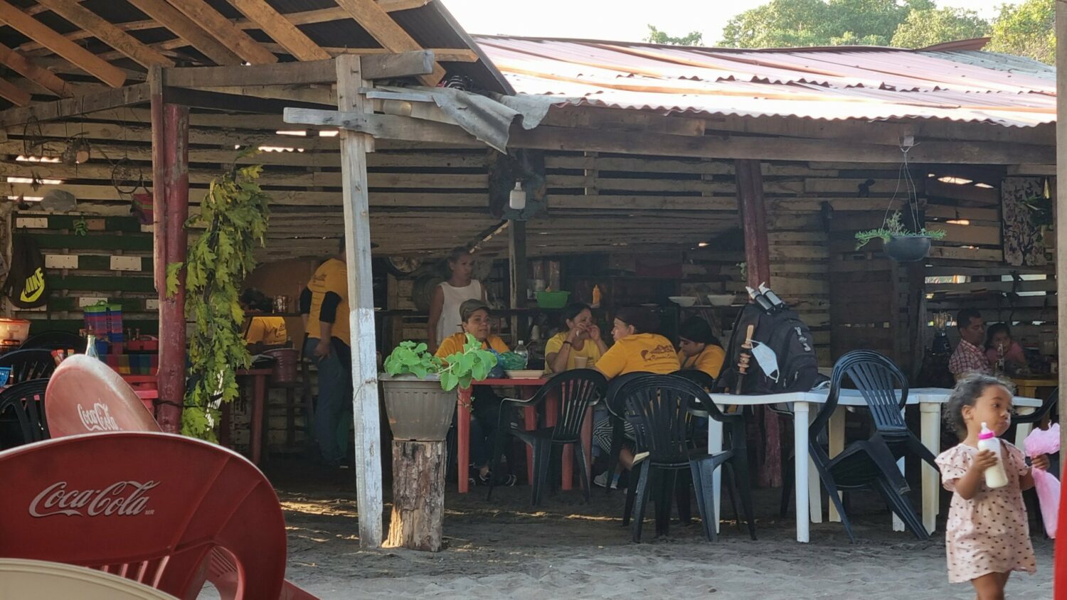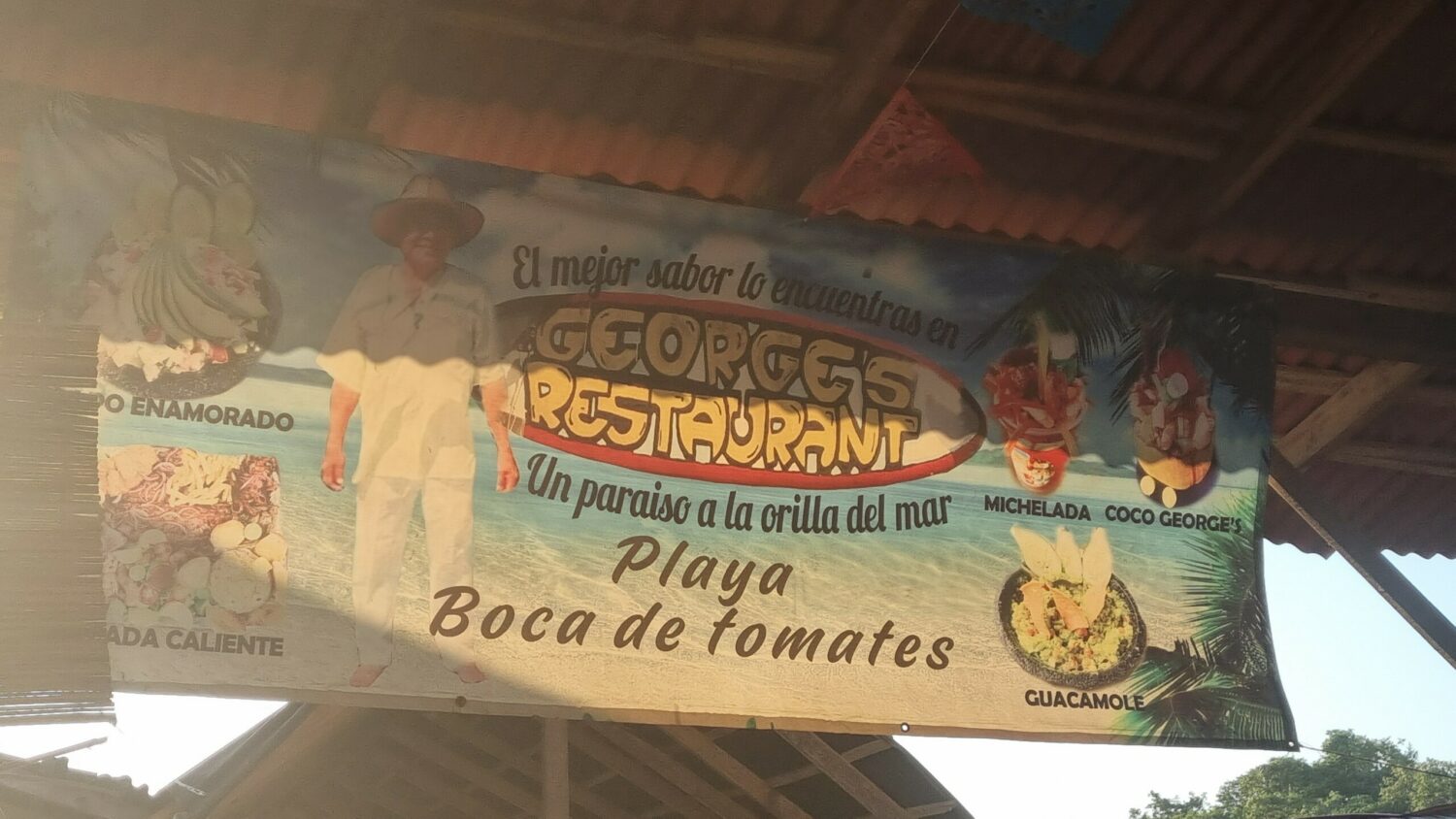 Una de estas ramadas se bautiza “Goerge’s Restaurant”, como lo anuncia una gran lona a la entrada que, además de promover micheladas, guacamole, aguachile y pulpo enamorado, reza: “un paraíso a la orilla del mar…”.